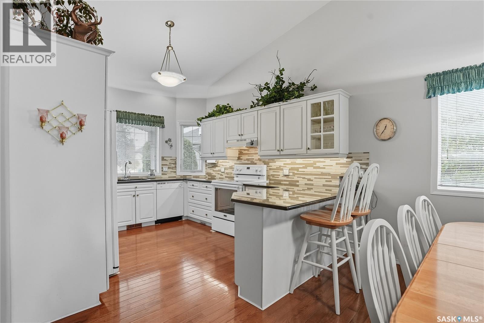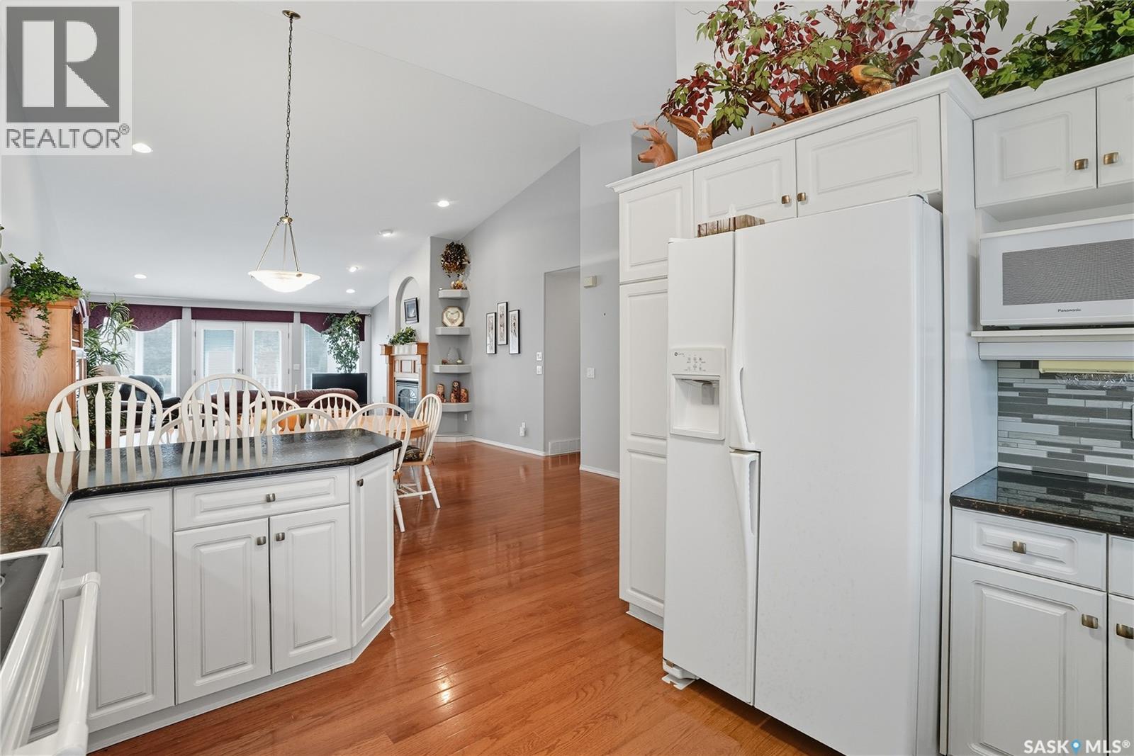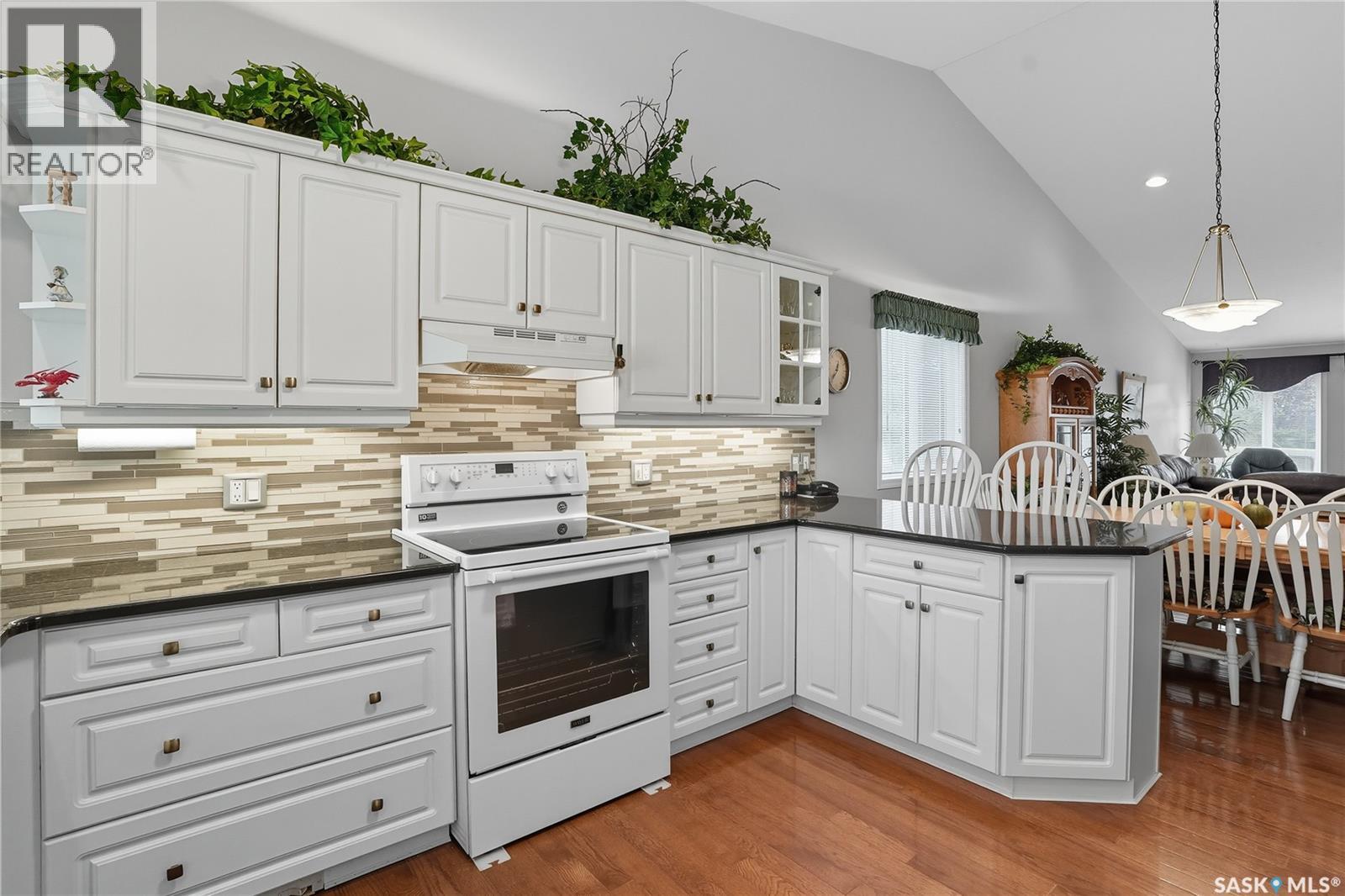 Lovely Ehrenburg-built raised bungalow with outstanding curb appeal and a welcoming front porch. This open-concept home showcases a vaulted ceiling in the great room, a cozy gas fireplace, and hardwood floors throughout the main level. The spacious, functional kitchen offers abundant cabinetry and quartz countertops—perfect for cooking and entertaining. There are 2+1 bedrooms, including a generous primary suite with a luxurious 5-piece ensuite featuring a jacuzzi tub and separate shower. The lower level includes a massive family room, ideal for relaxing or hosting guests. Step outside to a deck overlooking a beautifully landscaped and private 11,000 sq. ft. yard filled with fruit trees and perennials, plus a shed and dog run. The double heated garage is insulated and drywalled. This home is in mint condition—just move in and enjoy! (id:34297)