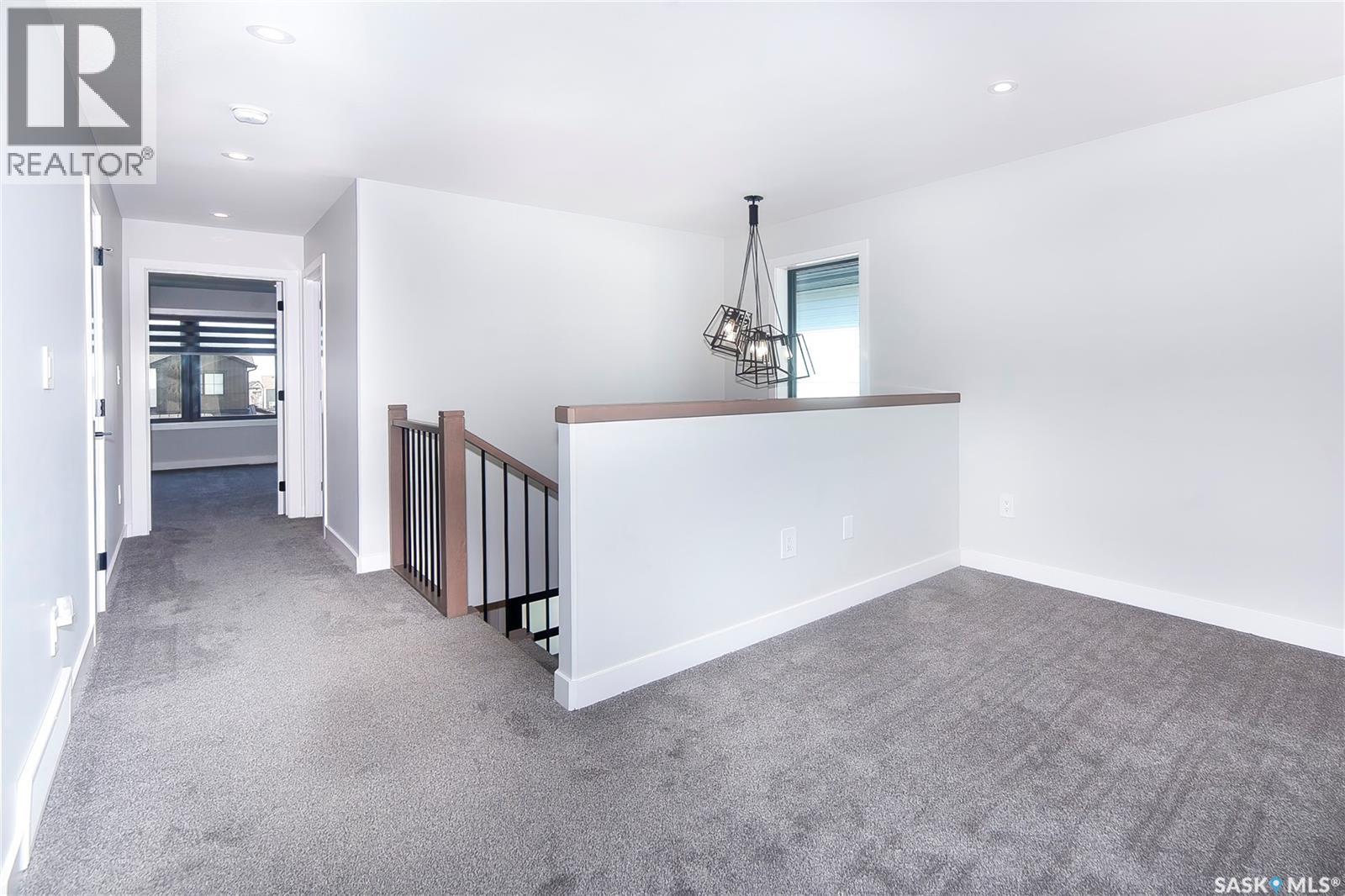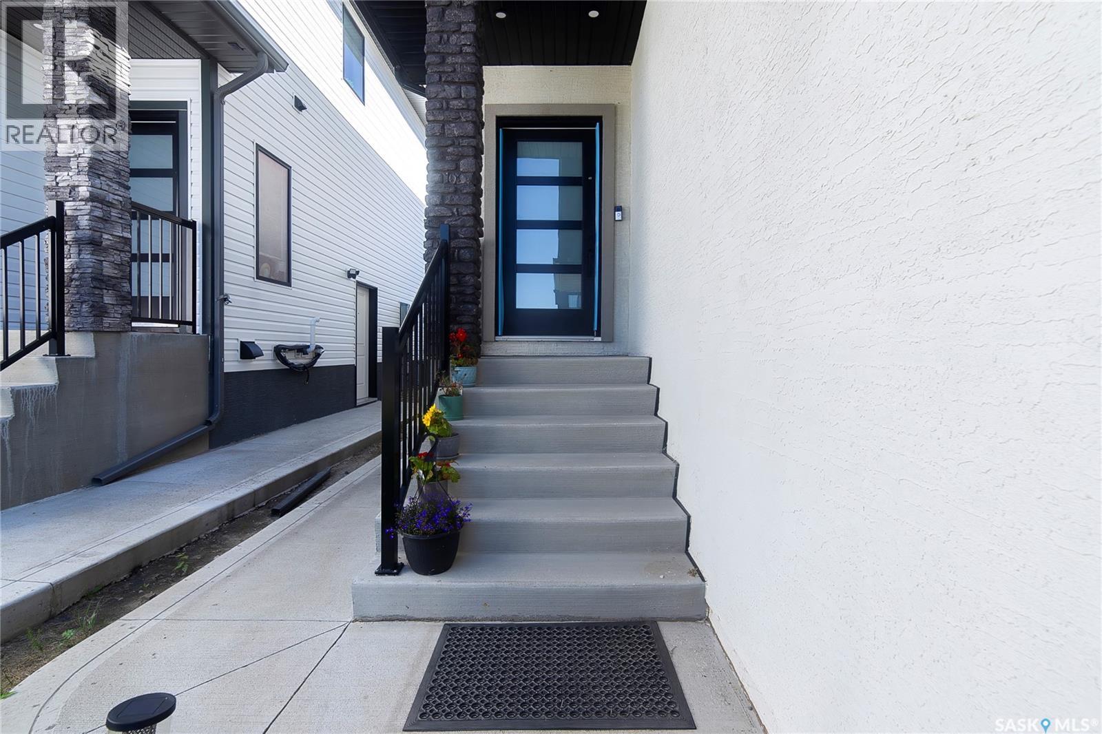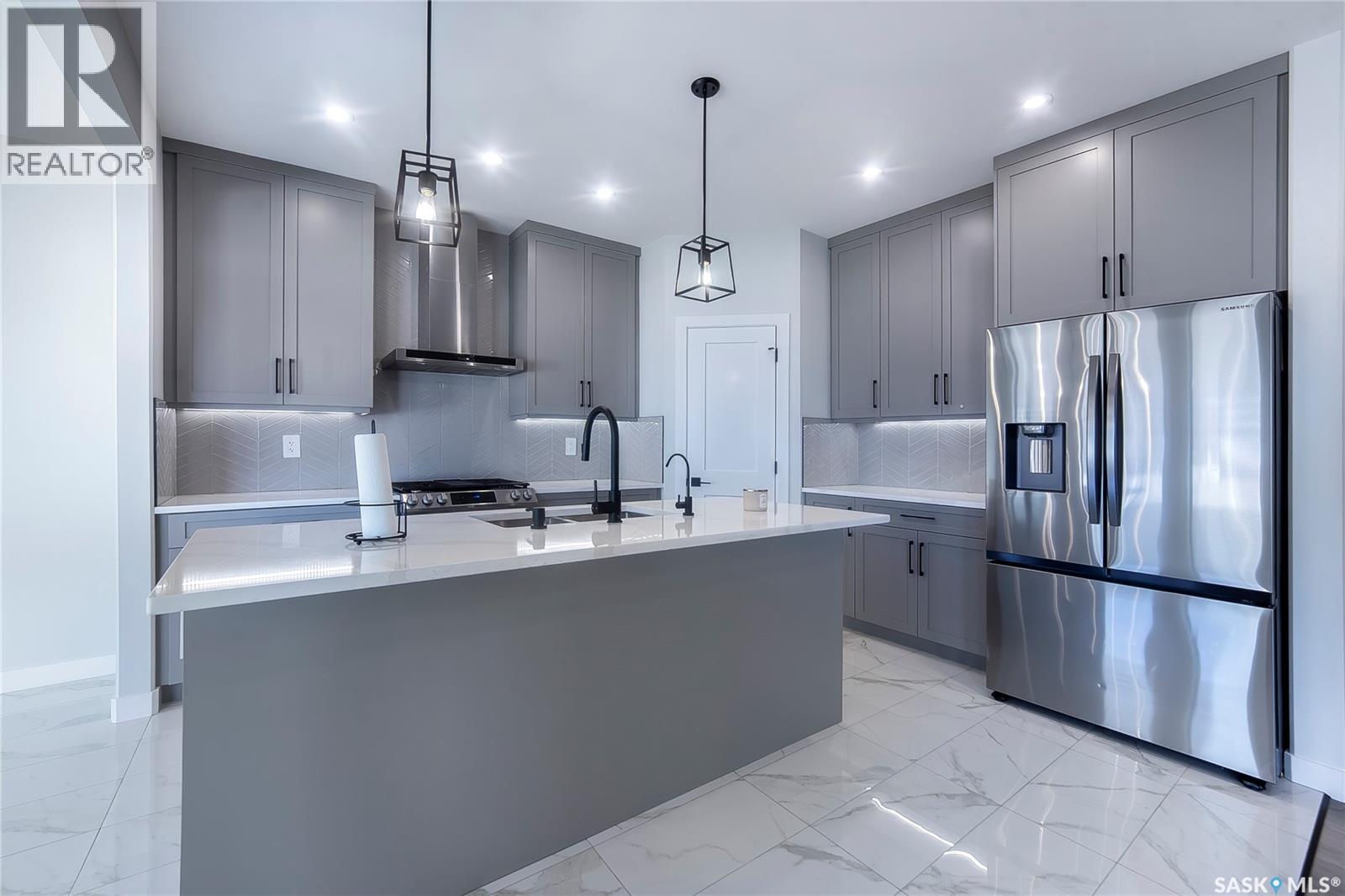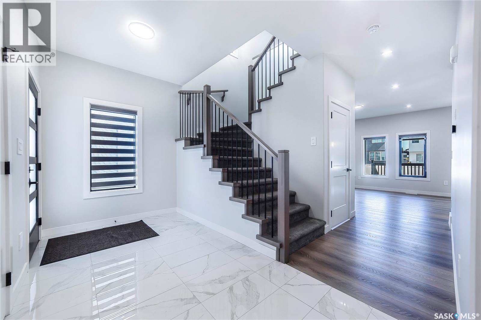 Welcome to this beautifully designed 6-bedroom, 4-bathroom home located in the desirable neighborhood of Brighton. This 2,020 sq. ft. two-storey offers modern finishes, functional spaces, and income potential with a 2-bedroom legal basement suite. The main floor features a spacious tiled foyer, bright living room with a feature wall, electric fireplace, and large windows overlooking the backyard. The kitchen is equipped with Gas Range, stainless steel appliances, chimney-style hood fan, pantry, reverse osmosis system, and modern cabinetry and a generous dining area. The Main-floor bedroom with a full bathroom adds convenience and flexibility for guests or extended family. Upstairs, the open stairwell with upgraded stained railing leads to a large bonus room perfect for family entertainment. The primary bedroom includes a luxurious 5-piece ensuite, while two additional bedrooms share a full bathroom. A laundry room with sink is conveniently located on the second floor. The fully developed basement with 9 feet ceiling includes a 2-bedroom legal suite with full kitchen, appliances, separate laundry, and private entrance—ideal for rental income. Additional features include Window covering, upgraded lighting and plumbing fixtures throughout, stucco exterior, finished deck, partially fenced backyard, and a heated double attached garage with built-in shelving. Located just steps from parks and walking paths, this home offers comfort, style, and functionality in one of Saskatoon’s most sought-after communities. Call your Realtor today to book a viewing. (id:34297)