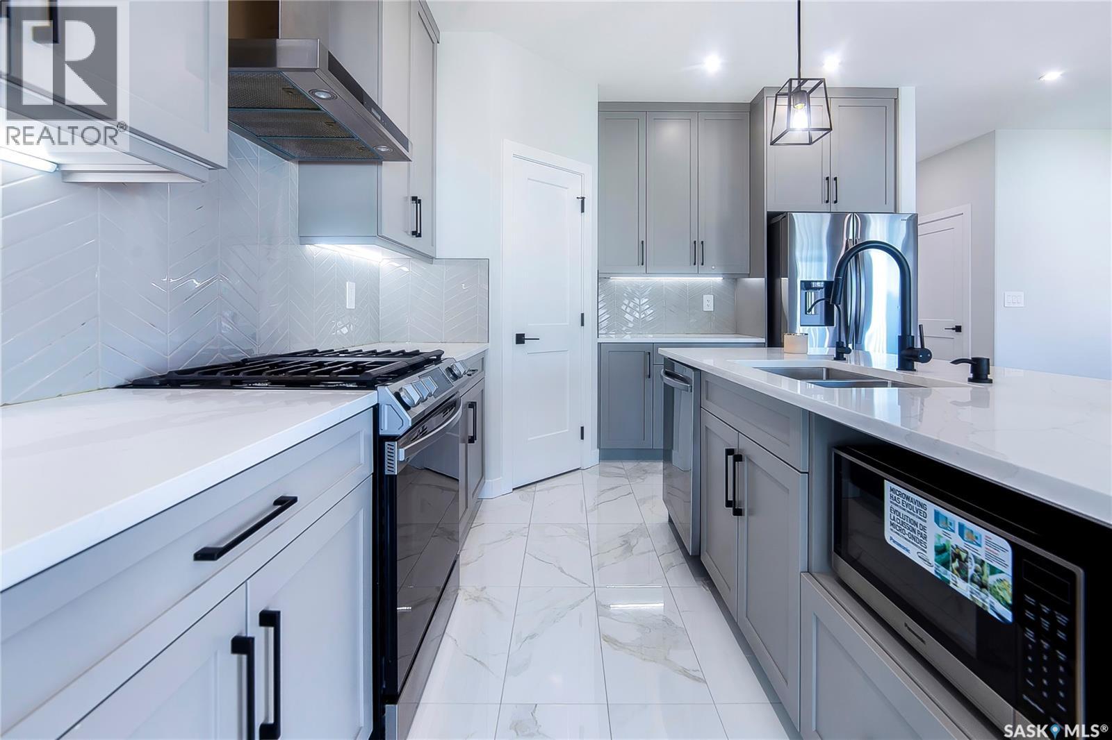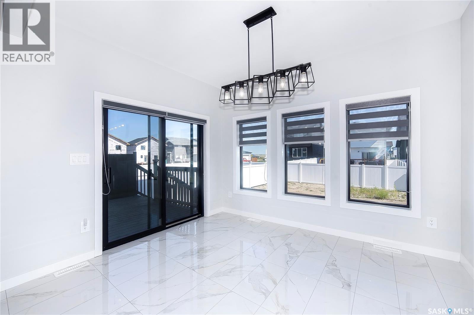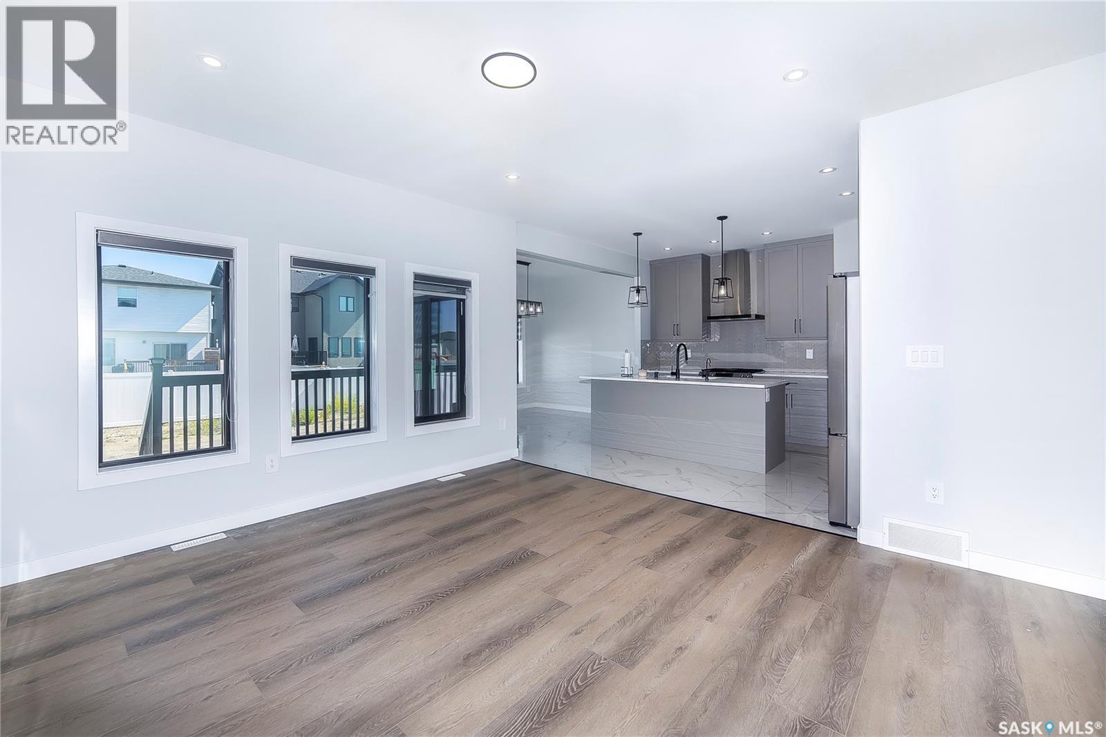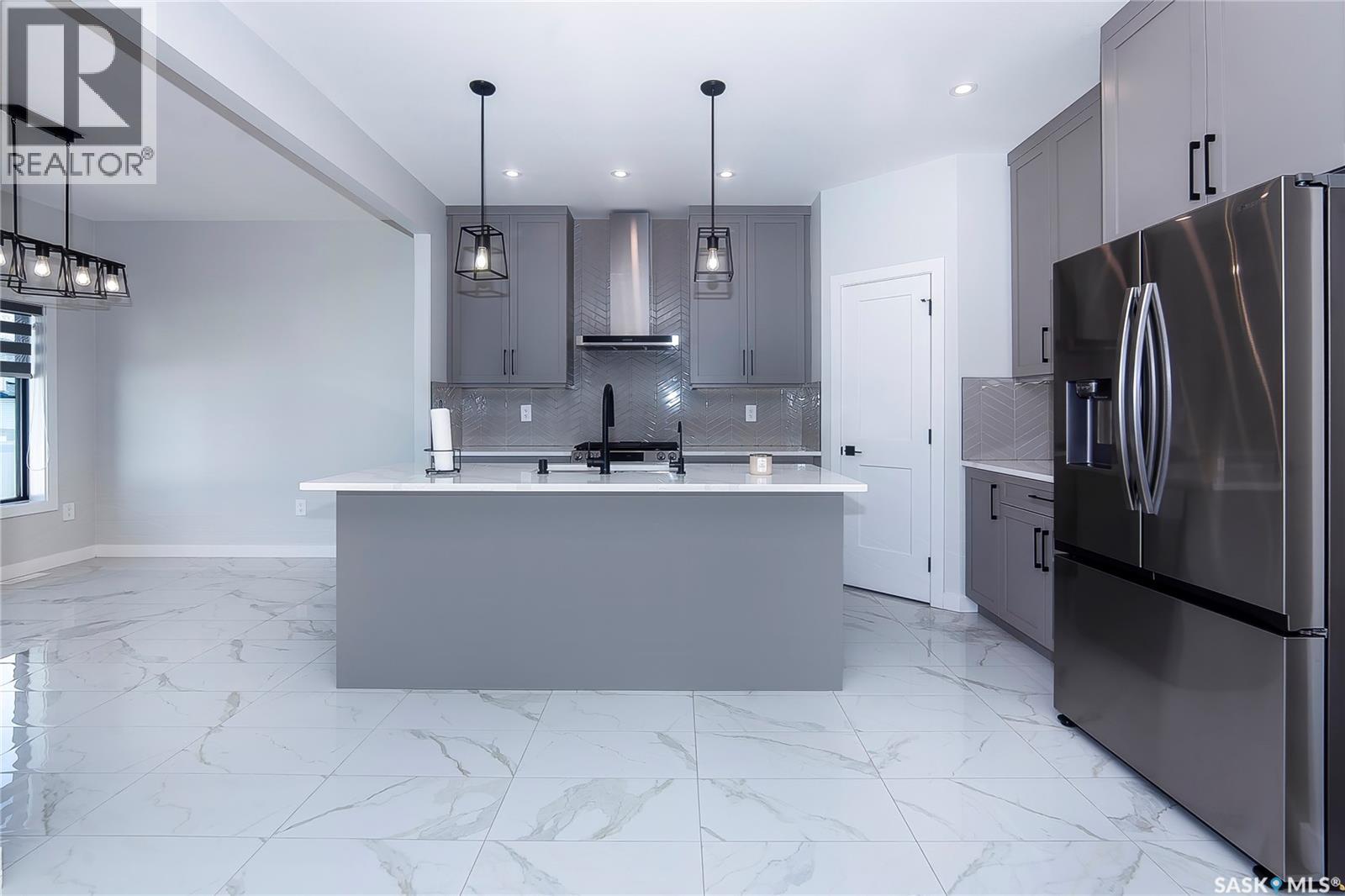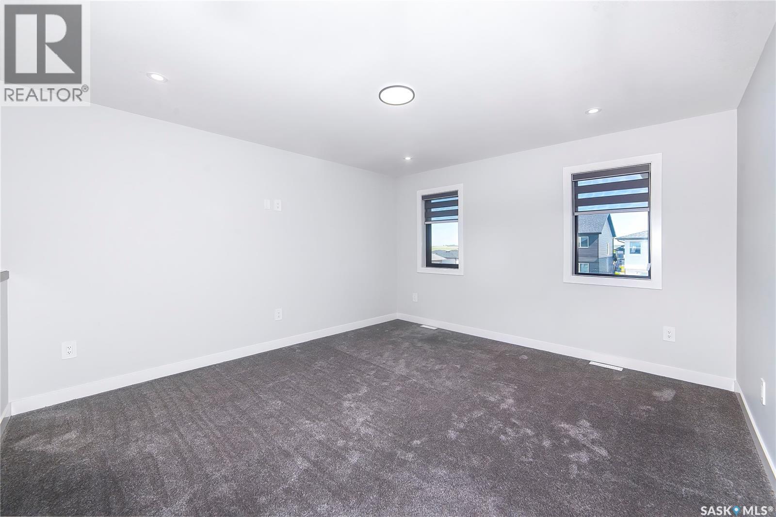 Welcome to this beautifully designed 6-bedroom, 4-bathroom home located in the desirable neighborhood of Brighton. This 2,020 sq. ft. two-storey offers modern finishes, functional spaces, and income potential with a 2-bedroom legal basement suite. The main floor features a spacious tiled foyer, bright living room with a feature wall, electric fireplace, and large windows overlooking the backyard. The kitchen is equipped with Gas Range, stainless steel appliances, chimney-style hood fan, pantry, reverse osmosis system, and modern cabinetry and a generous dining area. The Main-floor bedroom with a full bathroom adds convenience and flexibility for guests or extended family. Upstairs, the open stairwell with upgraded stained railing leads to a large bonus room perfect for family entertainment. The primary bedroom includes a luxurious 5-piece ensuite, while two additional bedrooms share a full bathroom. A laundry room with sink is conveniently located on the second floor. The fully developed basement with 9 feet ceiling includes a 2-bedroom legal suite with full kitchen, appliances, separate laundry, and private entrance—ideal for rental income. Additional features include Window covering, upgraded lighting and plumbing fixtures throughout, stucco exterior, finished deck, partially fenced backyard, and a heated double attached garage with built-in shelving. Located just steps from parks and walking paths, this home offers comfort, style, and functionality in one of Saskatoon’s most sought-after communities. Call your Realtor today to book a viewing. (id:34297)