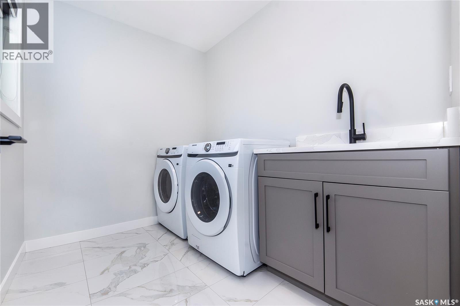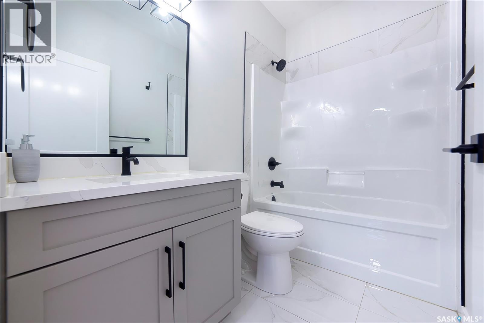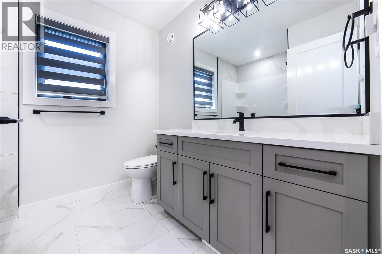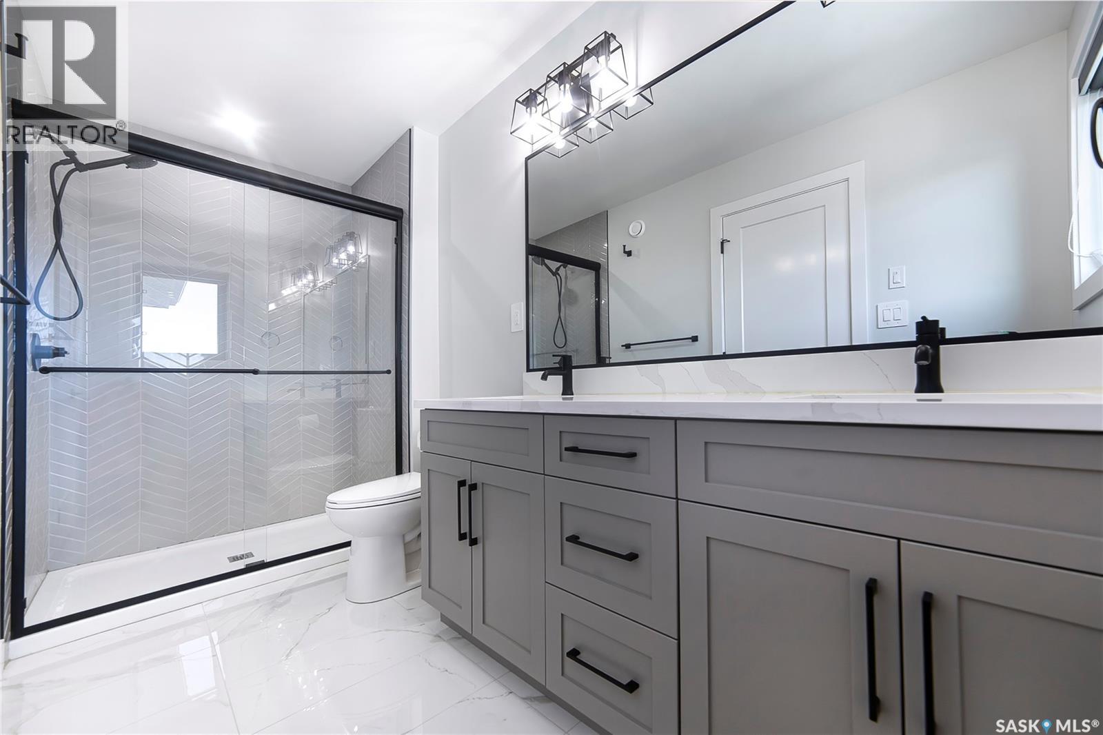 Welcome to this beautifully designed 6-bedroom, 4-bathroom home located in the desirable neighborhood of Brighton. This 2,020 sq. ft. two-storey offers modern finishes, functional spaces, and income potential with a 2-bedroom legal basement suite. The main floor features a spacious tiled foyer, bright living room with a feature wall, electric fireplace, and large windows overlooking the backyard. The kitchen is equipped with Gas Range, stainless steel appliances, chimney-style hood fan, pantry, reverse osmosis system, and modern cabinetry and a generous dining area. The Main-floor bedroom with a full bathroom adds convenience and flexibility for guests or extended family. Upstairs, the open stairwell with upgraded stained railing leads to a large bonus room perfect for family entertainment. The primary bedroom includes a luxurious 5-piece ensuite, while two additional bedrooms share a full bathroom. A laundry room with sink is conveniently located on the second floor. The fully developed basement with 9 feet ceiling includes a 2-bedroom legal suite with full kitchen, appliances, separate laundry, and private entrance—ideal for rental income. Additional features include Window covering, upgraded lighting and plumbing fixtures throughout, stucco exterior, finished deck, partially fenced backyard, and a heated double attached garage with built-in shelving. Located just steps from parks and walking paths, this home offers comfort, style, and functionality in one of Saskatoon’s most sought-after communities. Call your Realtor today to book a viewing. (id:34297)
