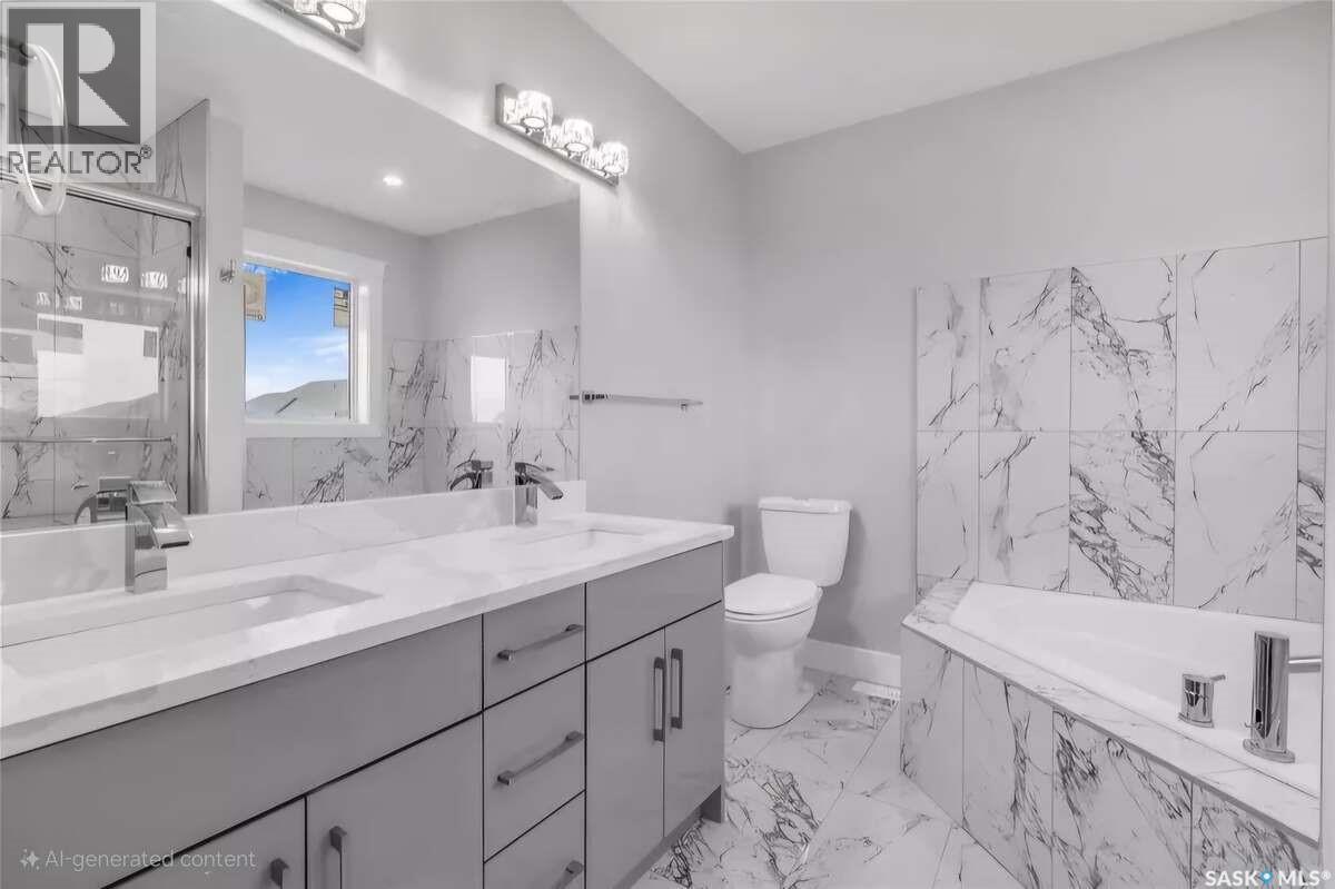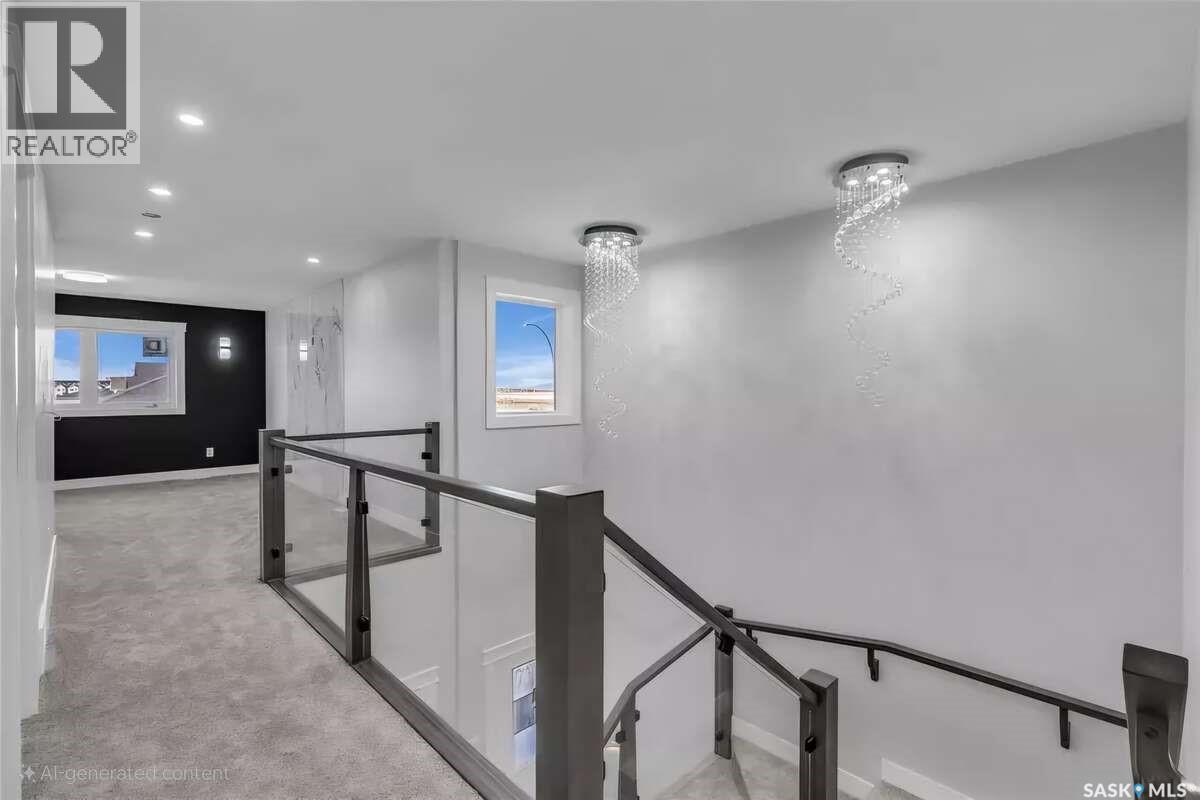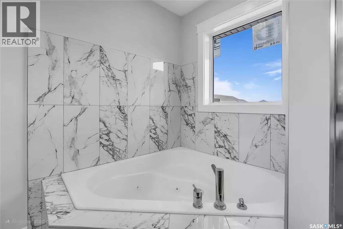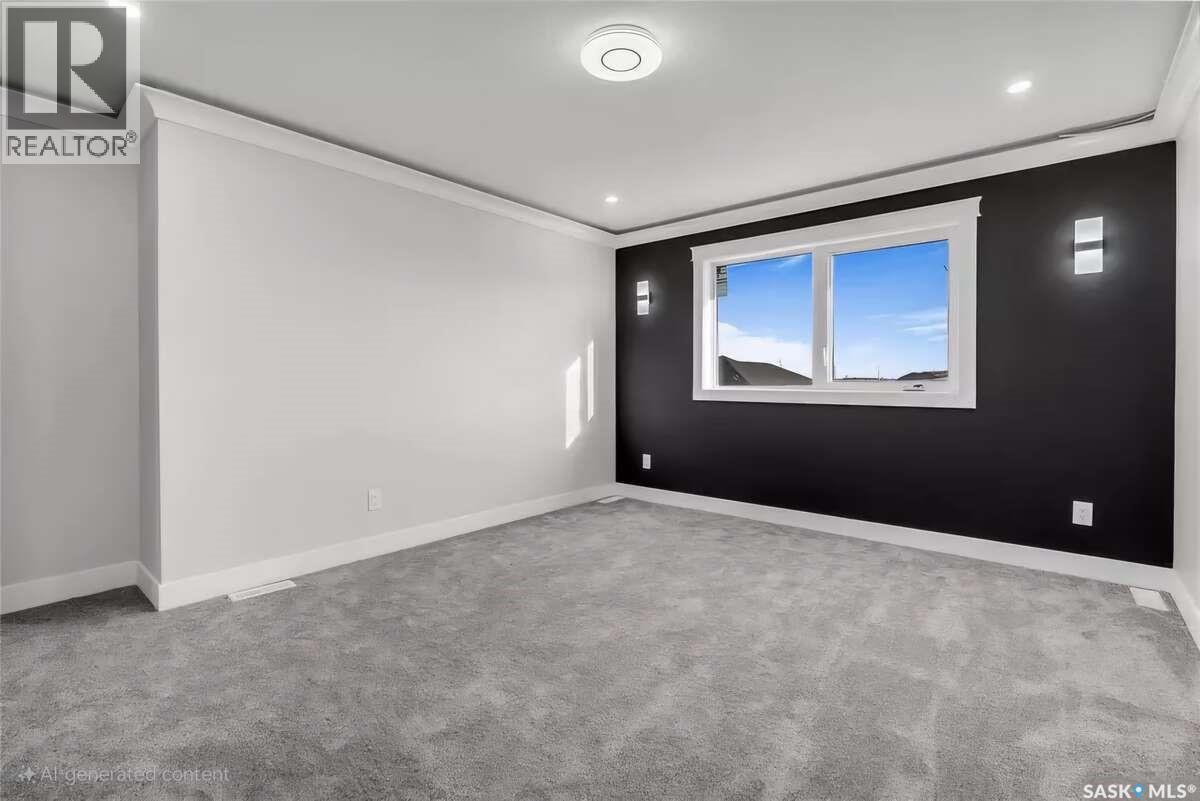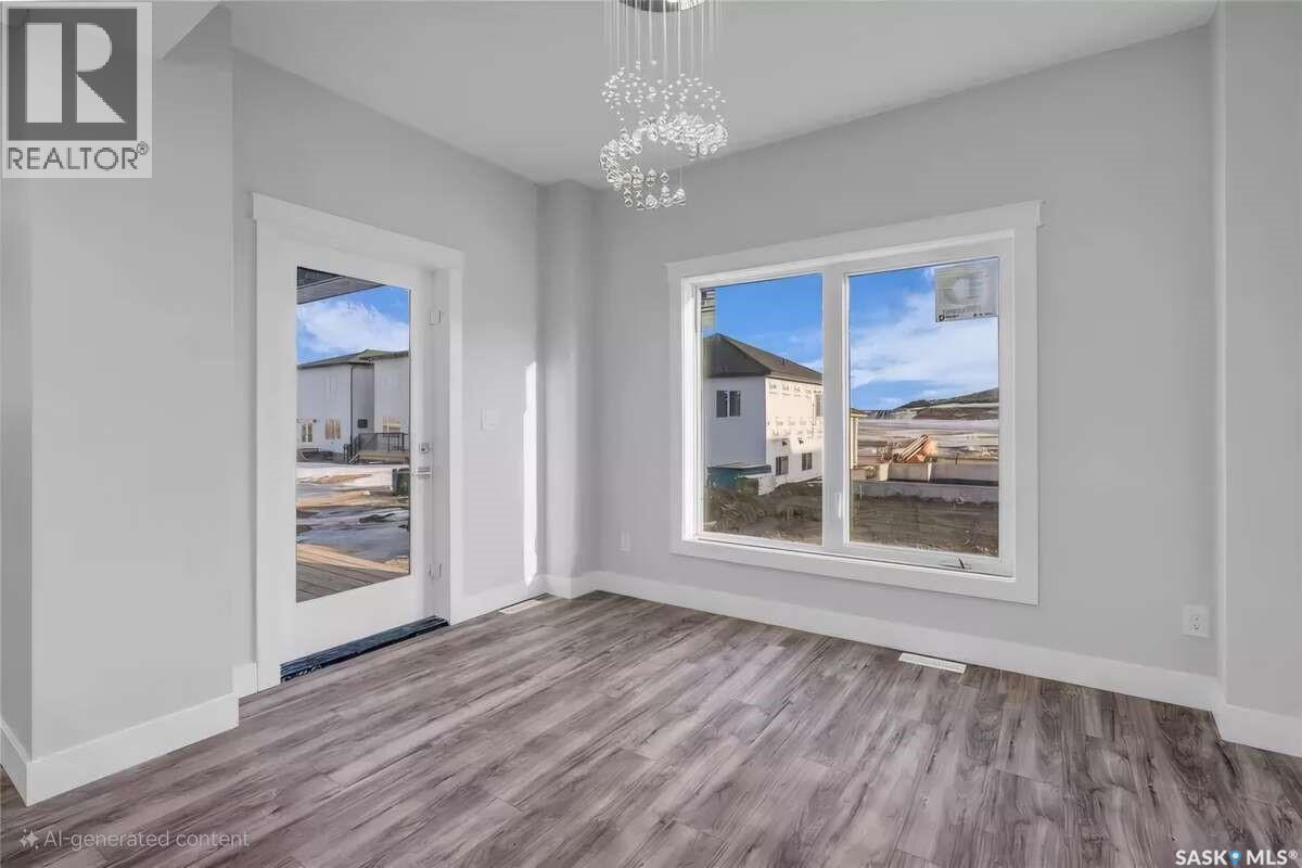 For more information, please click the "More Information" button. Welcome to this beautifully crafted custom home located in the heart of Brighton, one of Saskatoon’s most sought-after communities. Thoughtfully designed with space, light, and comfort in mind, this home offers an ideal balance of elegance and everyday functionality. The striking tall front entry creates an impressive first impression, leading into a grand double-height foyer filled with natural light and open sightlines. The open-concept main floor is perfect for both family living and entertaining, featuring a spacious living room with a modern fireplace and large windows that flood the space with sunlight. The dining area flows seamlessly into the kitchen, making everyday meals and hosting effortless. The gourmet kitchen is both stylish and practical, offering premium cabinetry, elegant finishes, and generous counter space. A fully equipped spice kitchen adds exceptional convenience, ideal for preparing aromatic or oily dishes while keeping the main kitchen clean and show-ready. Upstairs, the home is designed with families in mind, offering four well-appointed bedrooms and a versatile bonus room suitable for a home office, media room, or play area. The primary suite serves as a private retreat with a large walk-in closet and a stylish 4-piece ensuite. Two additional bedrooms share a convenient Jack & Jill bathroom, combining comfort and practicality. From the elegant staircase overlooking the foyer to the abundance of natural light throughout, this home feels bright, welcoming, and timeless. Located close to parks, walking paths, schools, and amenities, this is a perfect opportunity for families seeking a modern, high-quality home in one of Saskatoon’s best neighborhoods. (id:34297)
