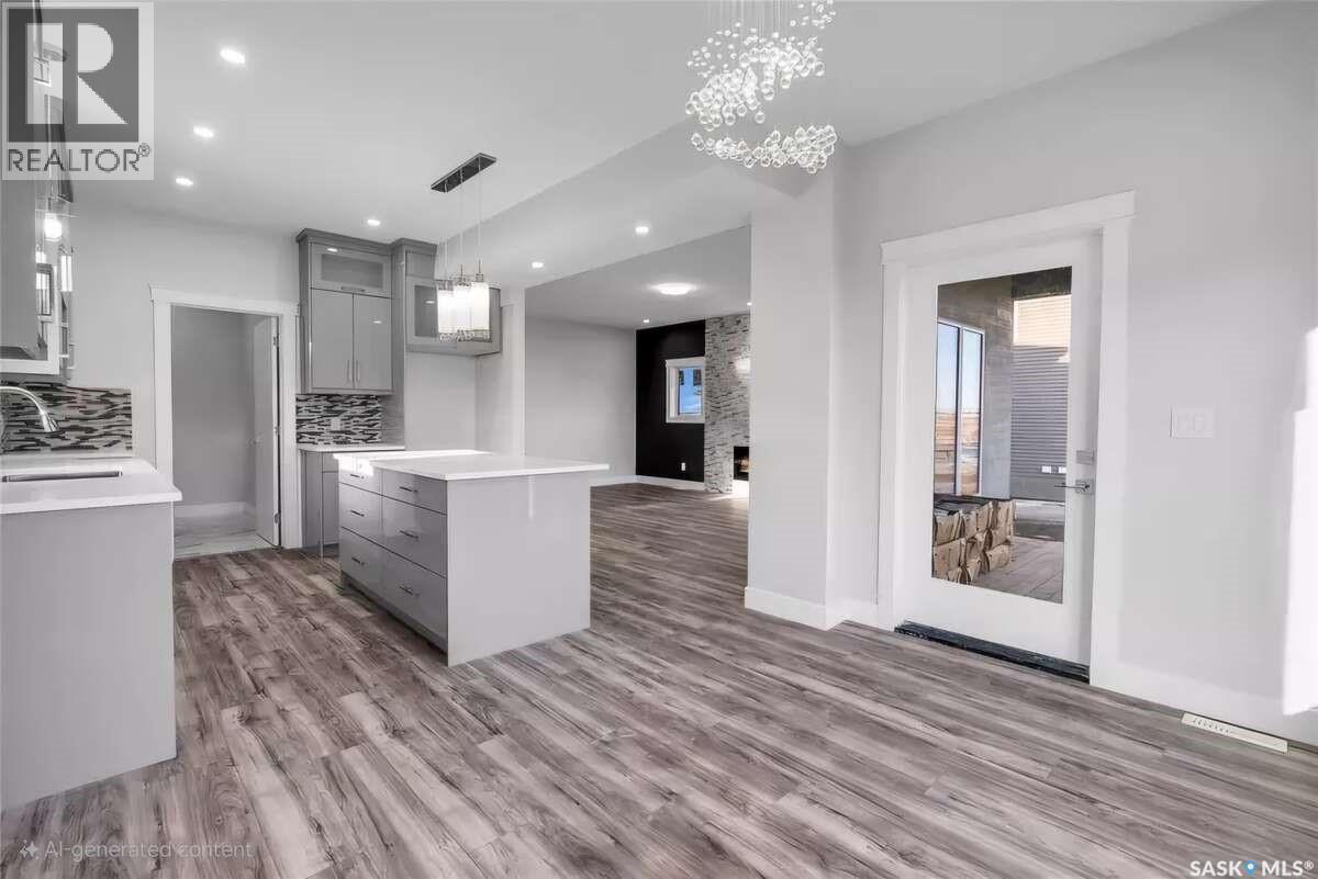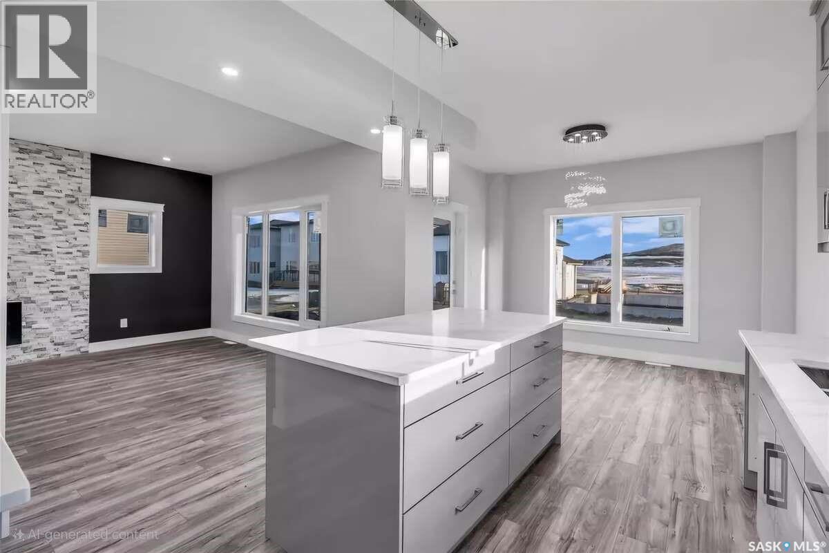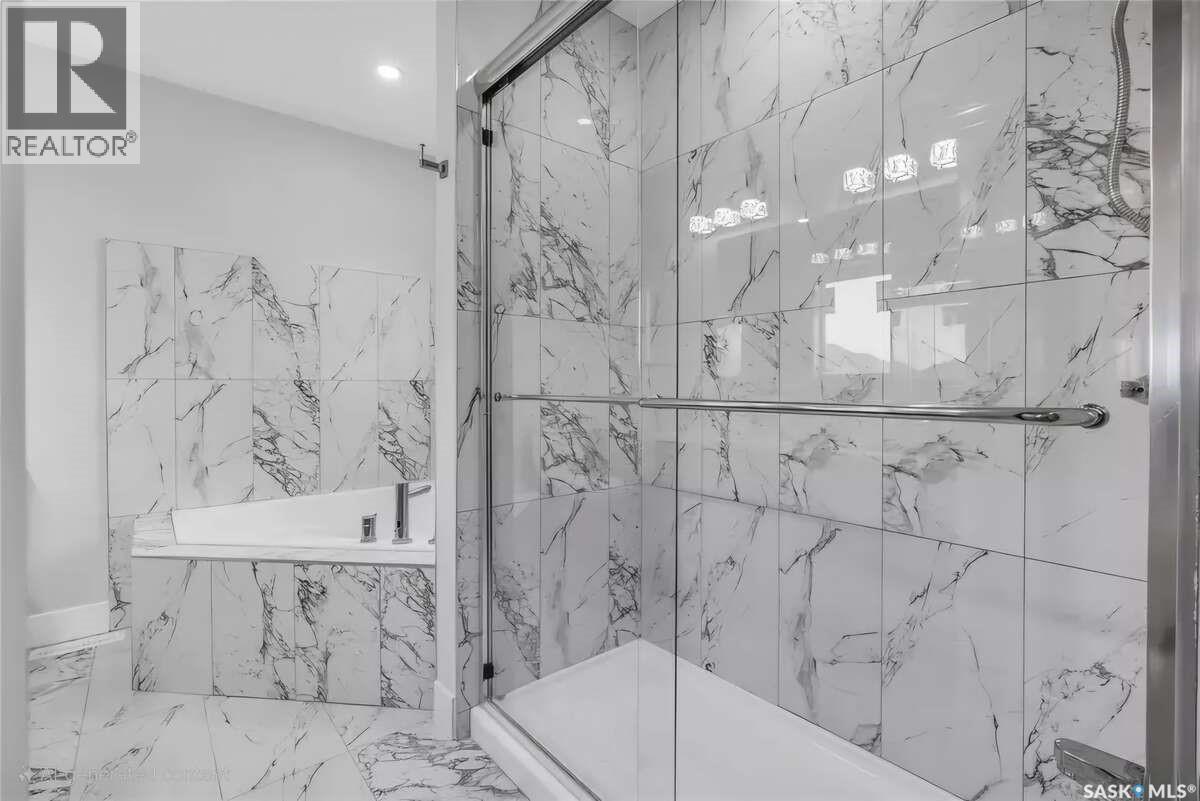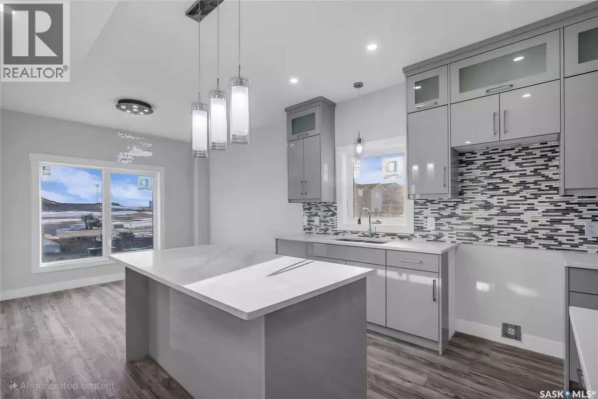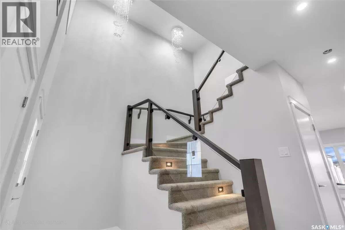 For more information, please click the "More Information" button. Welcome to this beautifully crafted custom home located in the heart of Brighton, one of Saskatoon’s most sought-after communities. Thoughtfully designed with space, light, and comfort in mind, this home offers an ideal balance of elegance and everyday functionality. The striking tall front entry creates an impressive first impression, leading into a grand double-height foyer filled with natural light and open sightlines. The open-concept main floor is perfect for both family living and entertaining, featuring a spacious living room with a modern fireplace and large windows that flood the space with sunlight. The dining area flows seamlessly into the kitchen, making everyday meals and hosting effortless. The gourmet kitchen is both stylish and practical, offering premium cabinetry, elegant finishes, and generous counter space. A fully equipped spice kitchen adds exceptional convenience, ideal for preparing aromatic or oily dishes while keeping the main kitchen clean and show-ready. Upstairs, the home is designed with families in mind, offering four well-appointed bedrooms and a versatile bonus room suitable for a home office, media room, or play area. The primary suite serves as a private retreat with a large walk-in closet and a stylish 4-piece ensuite. Two additional bedrooms share a convenient Jack & Jill bathroom, combining comfort and practicality. From the elegant staircase overlooking the foyer to the abundance of natural light throughout, this home feels bright, welcoming, and timeless. Located close to parks, walking paths, schools, and amenities, this is a perfect opportunity for families seeking a modern, high-quality home in one of Saskatoon’s best neighborhoods. (id:34297)