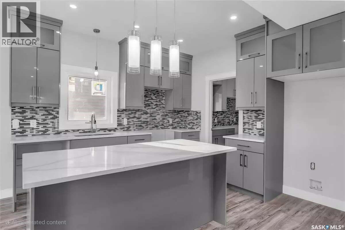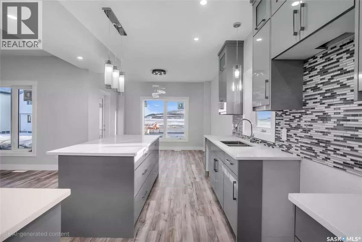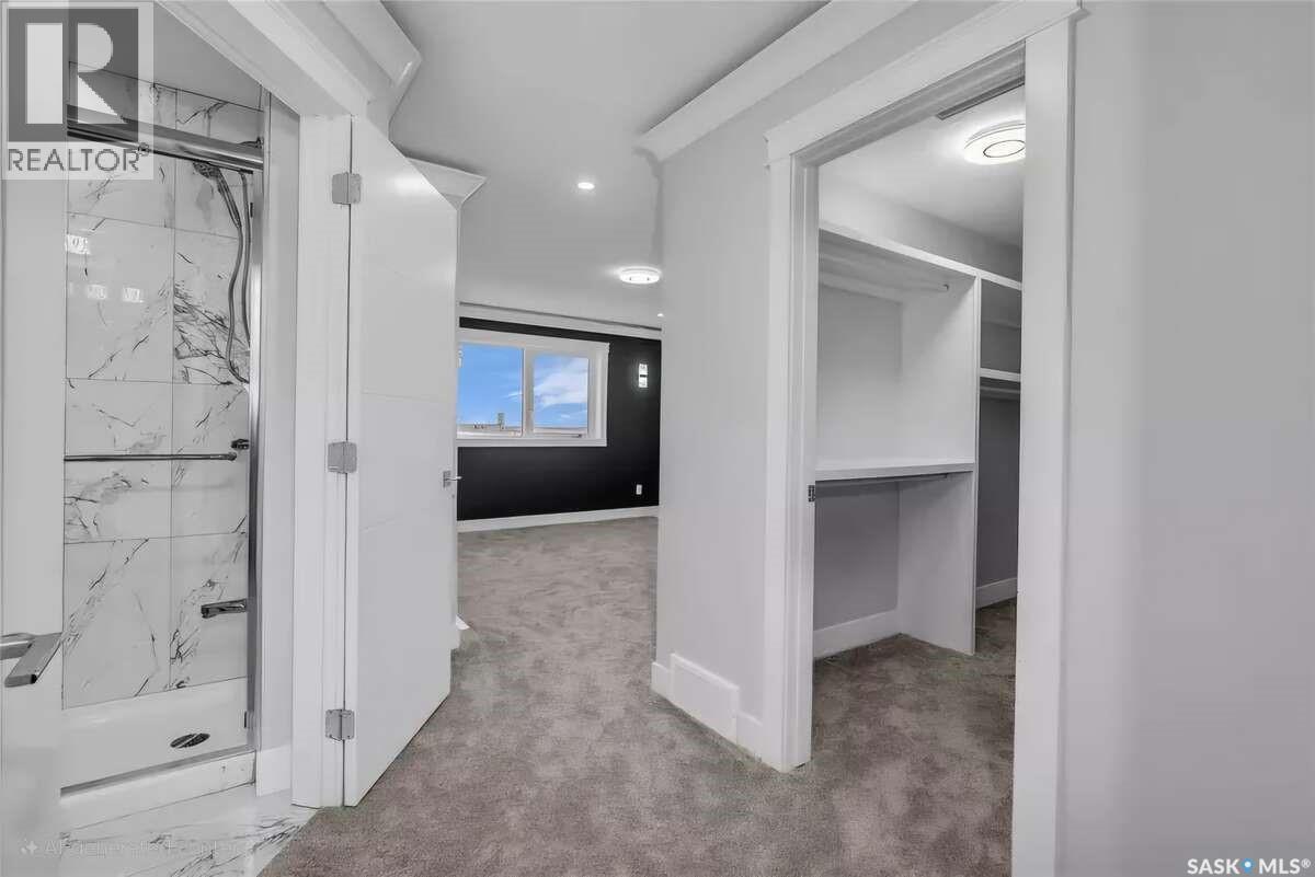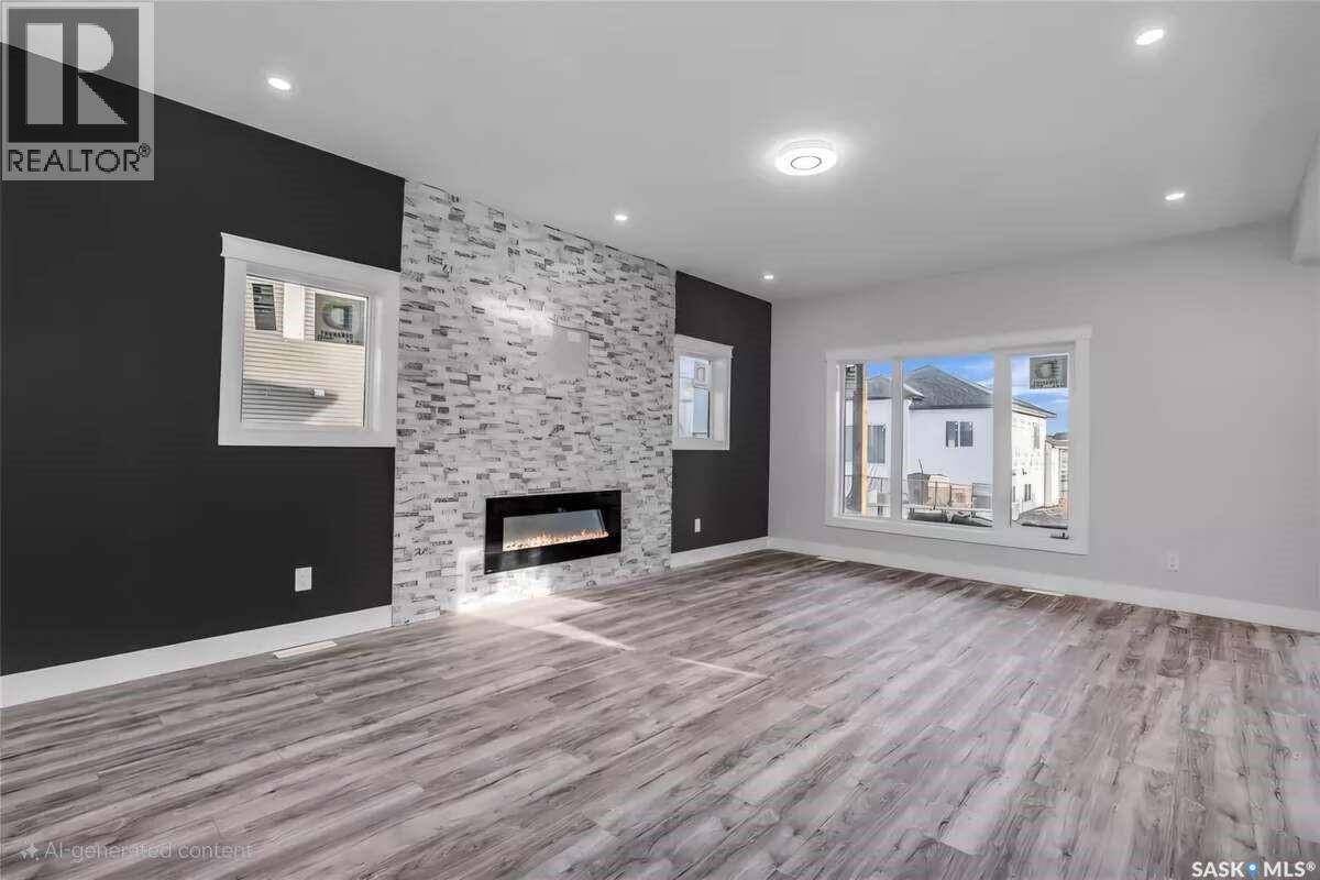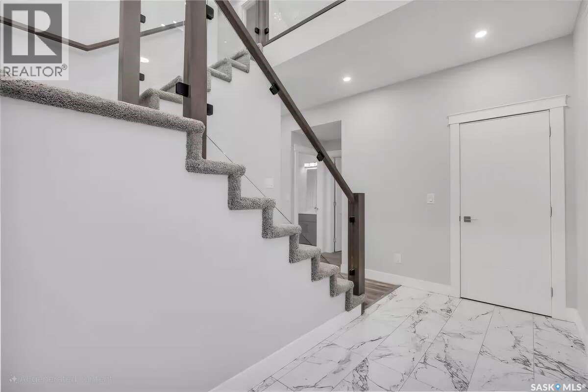 For more information, please click the "More Information" button. Welcome to this beautifully crafted custom home located in the heart of Brighton, one of Saskatoon’s most sought-after communities. Thoughtfully designed with space, light, and comfort in mind, this home offers an ideal balance of elegance and everyday functionality. The striking tall front entry creates an impressive first impression, leading into a grand double-height foyer filled with natural light and open sightlines. The open-concept main floor is perfect for both family living and entertaining, featuring a spacious living room with a modern fireplace and large windows that flood the space with sunlight. The dining area flows seamlessly into the kitchen, making everyday meals and hosting effortless. The gourmet kitchen is both stylish and practical, offering premium cabinetry, elegant finishes, and generous counter space. A fully equipped spice kitchen adds exceptional convenience, ideal for preparing aromatic or oily dishes while keeping the main kitchen clean and show-ready. Upstairs, the home is designed with families in mind, offering four well-appointed bedrooms and a versatile bonus room suitable for a home office, media room, or play area. The primary suite serves as a private retreat with a large walk-in closet and a stylish 4-piece ensuite. Two additional bedrooms share a convenient Jack & Jill bathroom, combining comfort and practicality. From the elegant staircase overlooking the foyer to the abundance of natural light throughout, this home feels bright, welcoming, and timeless. Located close to parks, walking paths, schools, and amenities, this is a perfect opportunity for families seeking a modern, high-quality home in one of Saskatoon’s best neighborhoods. (id:34297)