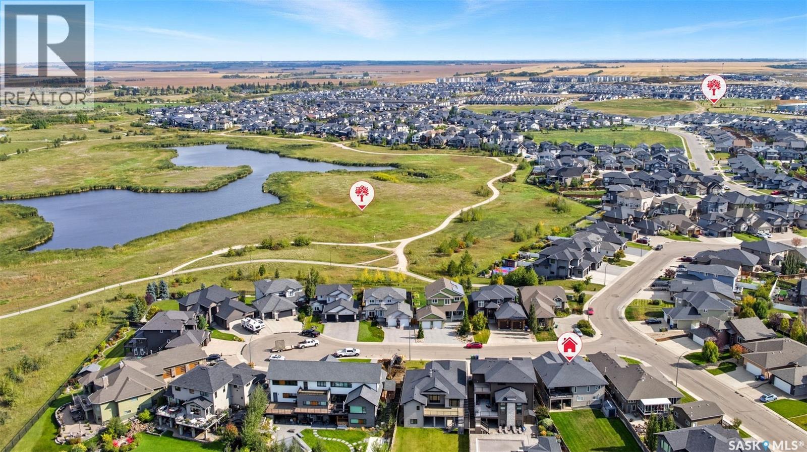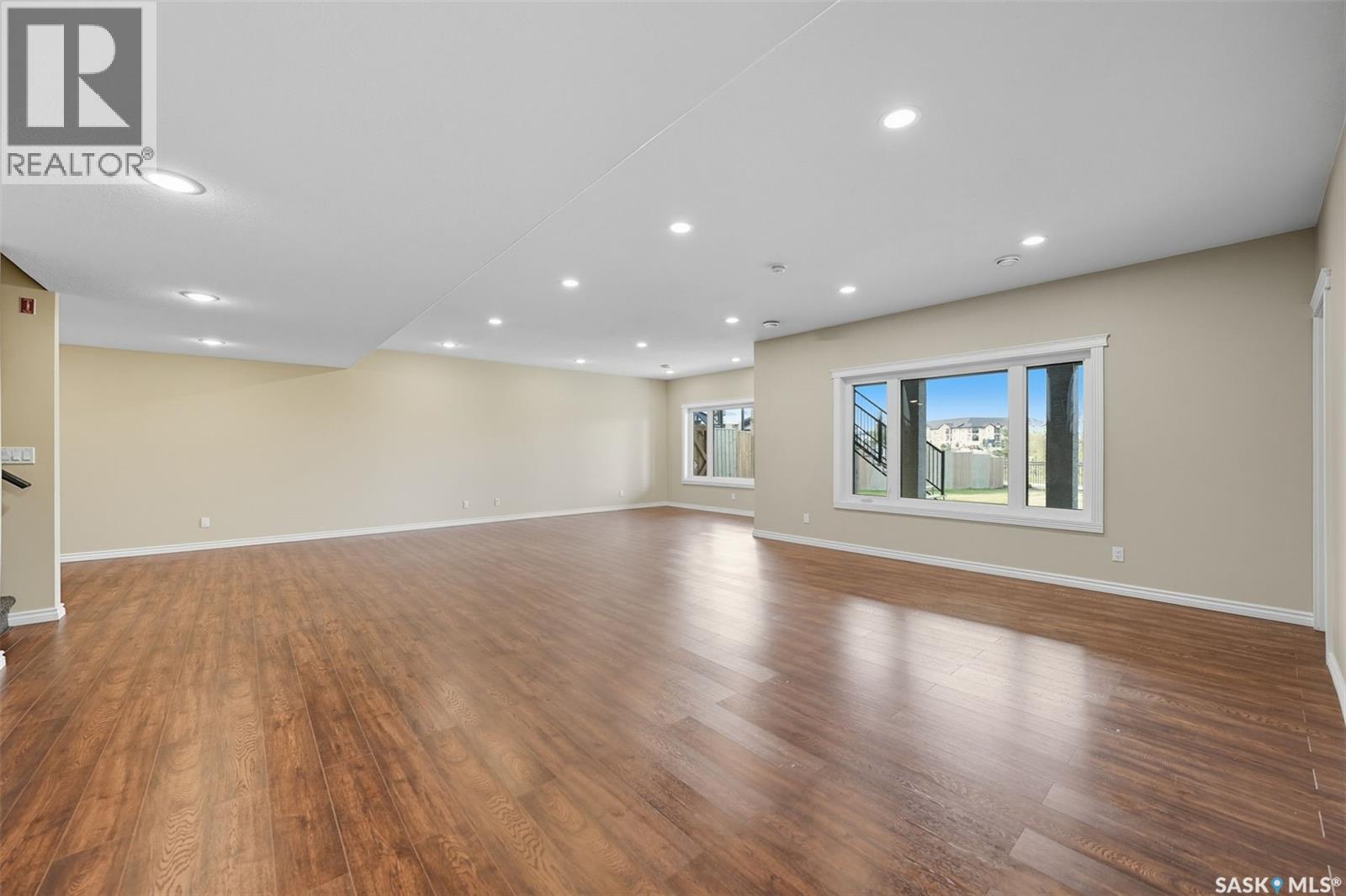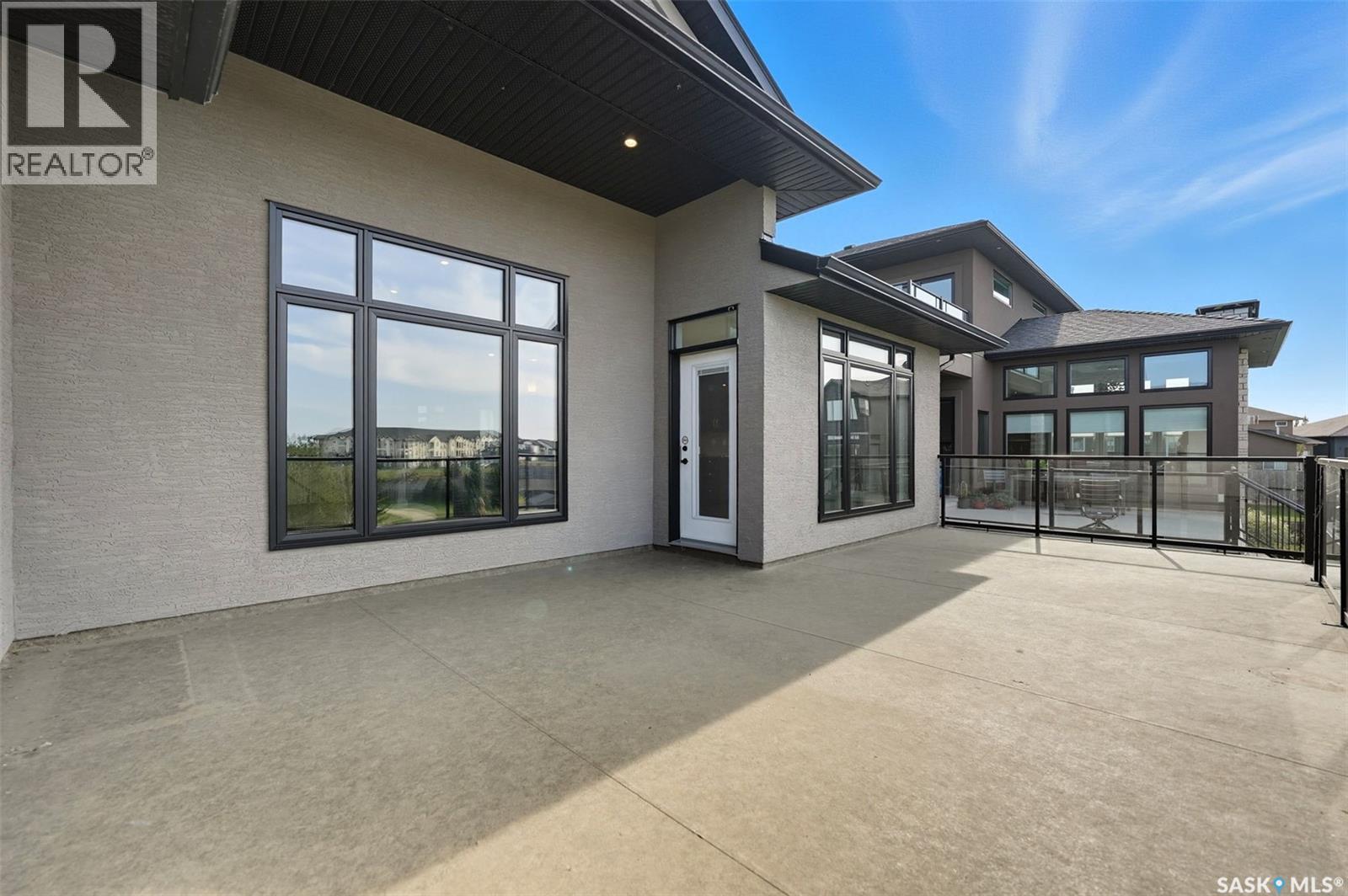 Welcome to 714 Ledingham Place, a rare find in a fantastic cul-de-sac location backing onto Hyde Park with breathtaking water views. Situated on a massive 9,559 sq. ft. lot with a sunny southwest-facing backyard, this D&S–built walkout bungalow offers over 3,600 sq. ft. of luxurious living space with top-quality finishes inside and out. The striking stone and stucco exterior, oversized driveway accommodating up to five vehicles, and impressive curb appeal set the tone. Inside, the main floor boasts soaring 12-ft ceilings, a spacious foyer with tile flooring, open-concept living with a tiled feature wall and gas fireplace, and a chef’s dream kitchen with abundant maple cabinetry, granite countertops, tiled backsplash, corner pantry, and a generous dining area overlooking the park and pond. Hardwood flooring flows throughout, complementing three large bedrooms, including a primary suite with walk-in closet and spa-like ensuite featuring dual sinks and a tiled shower. Main floor laundry adds convenience. The bright walkout basement expands the living space with a large games room, family room, office, two additional bedrooms with walk-in closets, a 5-piece bath with jetted tub, and durable laminate flooring. Outdoor living shines with a composite deck, glass railing, and stairs leading to the park-like yard with underground sprinklers on a timer. Additional upgrades include triple-pane windows, central vac, HRV, new central A/C (2025), dishwasher (2023), and fridge (2021). Close to schools, shopping, and all amenities, this home truly shows 10/10. (id:34297)
