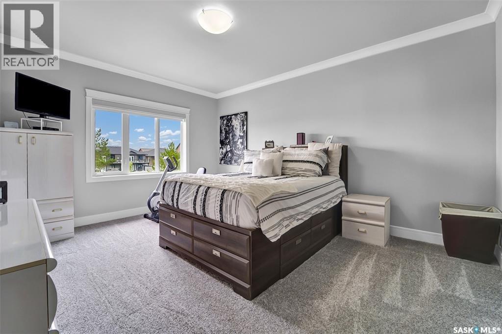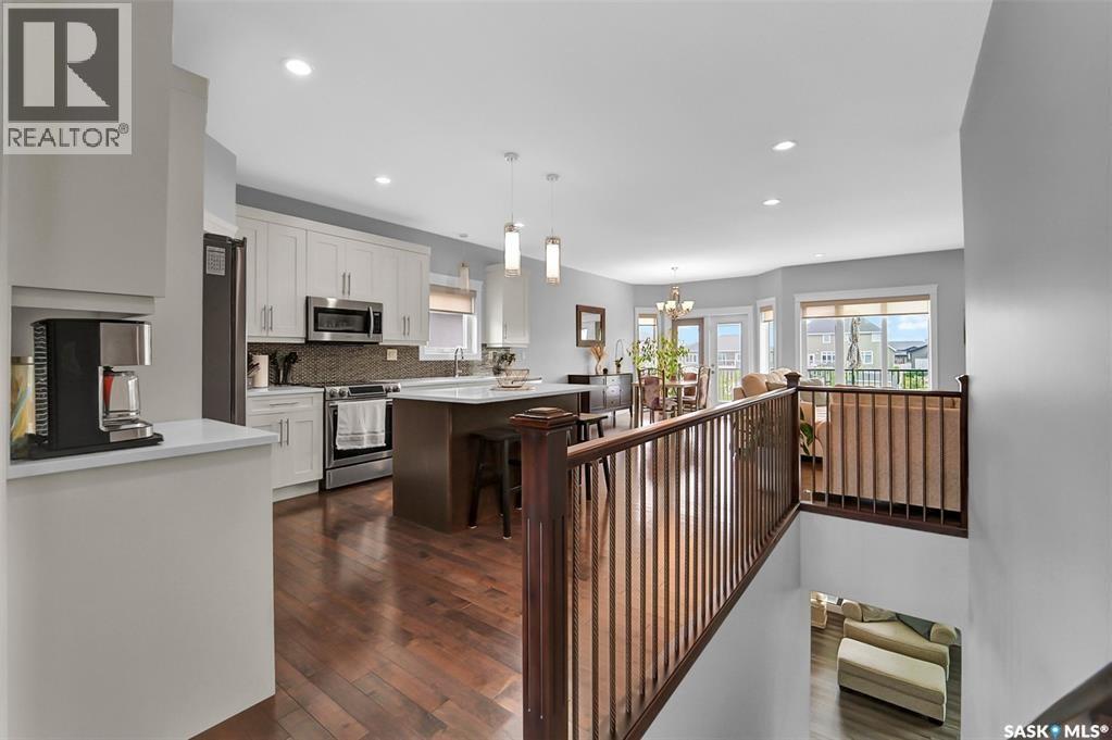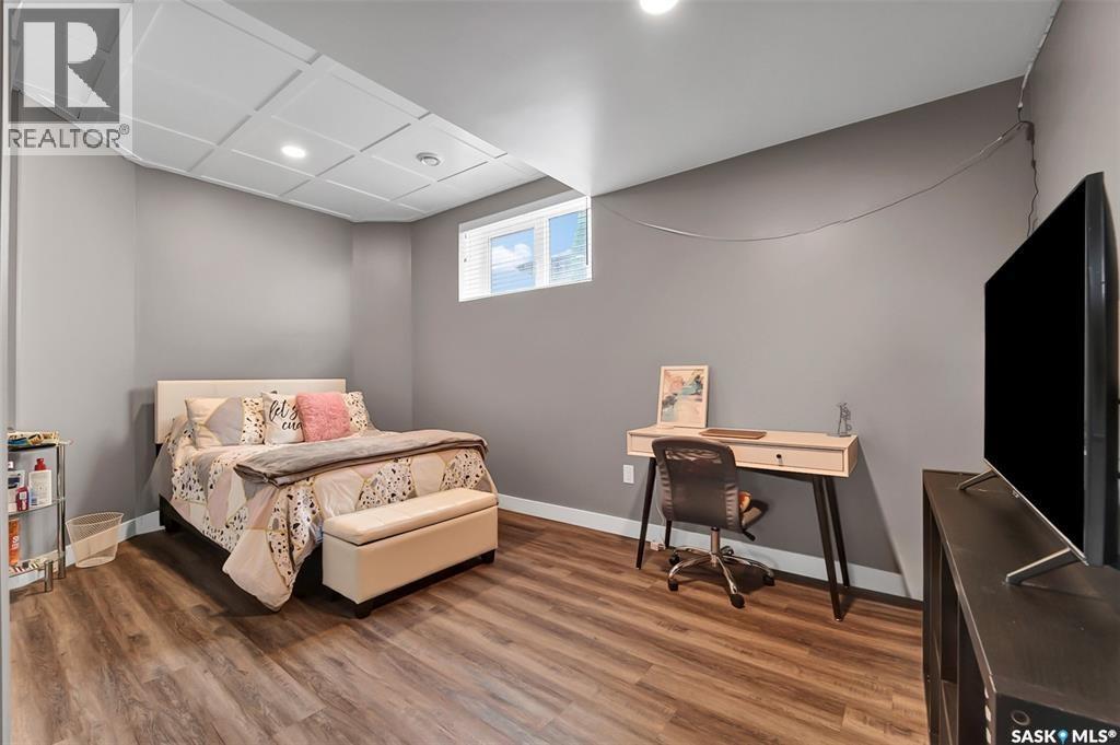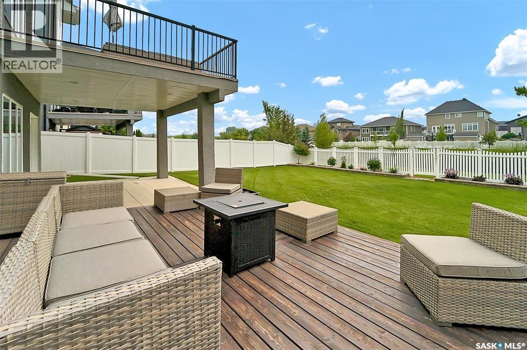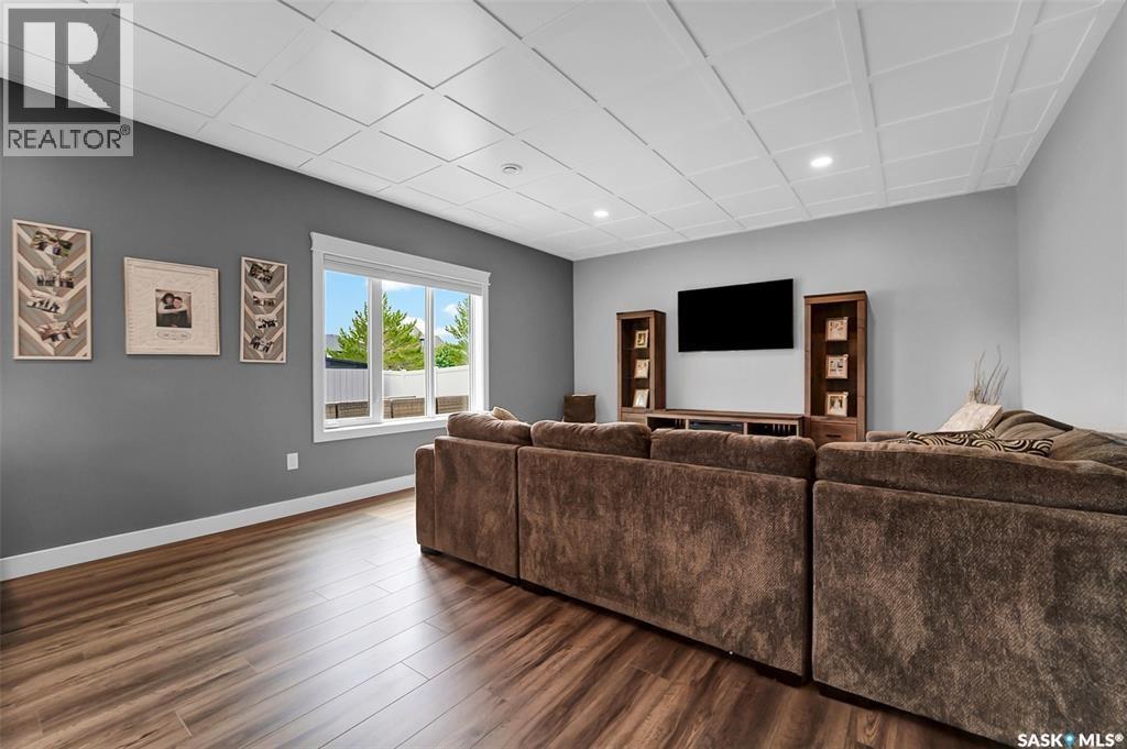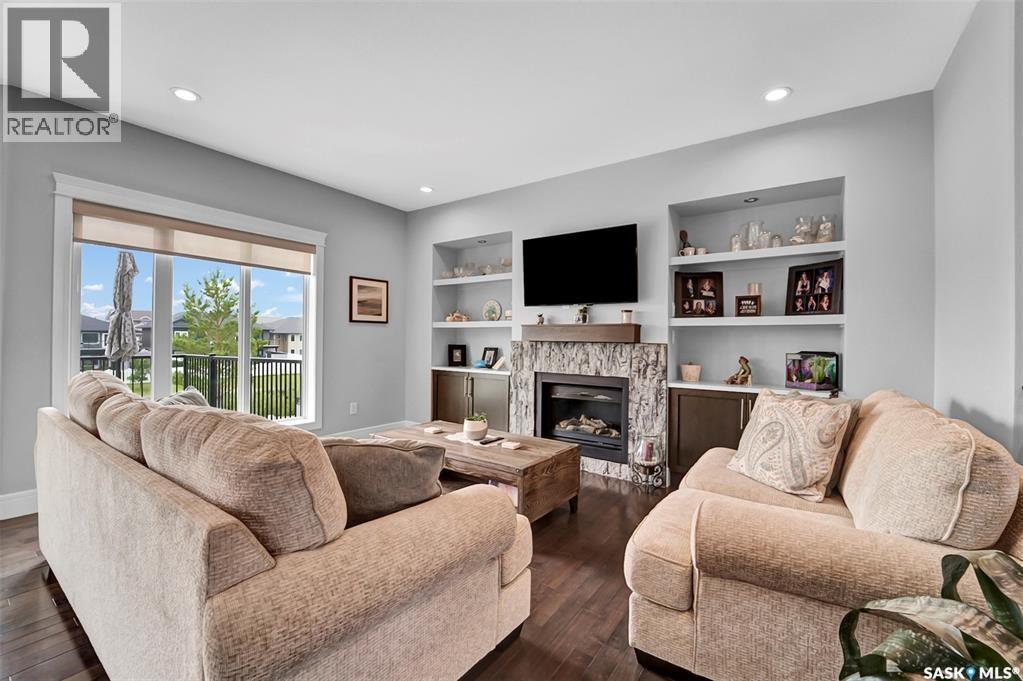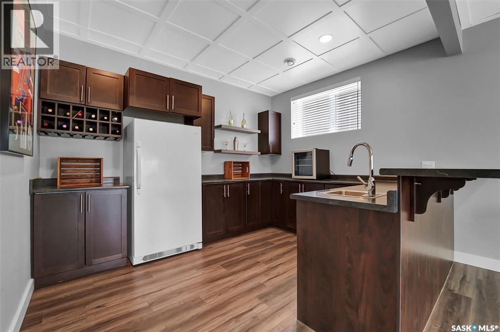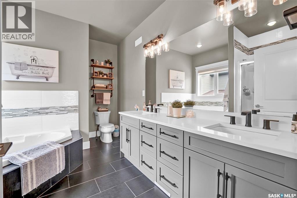 Welcome to this stunning walkout bungalow backing onto the park in Warman, where over $60,000 in recent upgrades have elevated this home into something truly special. From the moment you step inside, you’ll be impressed by the spacious layout, elegant finishes, and natural light throughout. The main floor features a grand front entrance, a high-end kitchen with an oversized island, and a warm, inviting living room with a gas fireplace. The large primary bedroom includes a luxurious five-piece ensuite, while a second bedroom, dedicated office space, main floor laundry, and a breathtaking deck overlooking the park complete the level. The walkout basement offers a spacious family room, games area with a bar, two generous bedrooms, and a full bathroom. The beautifully landscaped backyard includes a lower patio, stonework, and two storage sheds. A heated double garage with 10-foot ceilings adds practicality to the home’s charm. Upgrades include luxury vinyl plank flooring in the basement, upgraded carpet on the main floor, UV/heat protectant tint On the windows in the main floor living room,right side patio door as well as the basement family room right side, a custom front door, refreshed master bath with new taps and paint, front and lower decks, brick flowerbeds, and custom blinds in the basement. With its thoughtful design, serene park views, and turn-key updates, this home is the perfect blend of comfort and elegance ready for you to enjoy. This beautiful home is close to the schools, Warman community centre, and all other amenities. (id:34297)