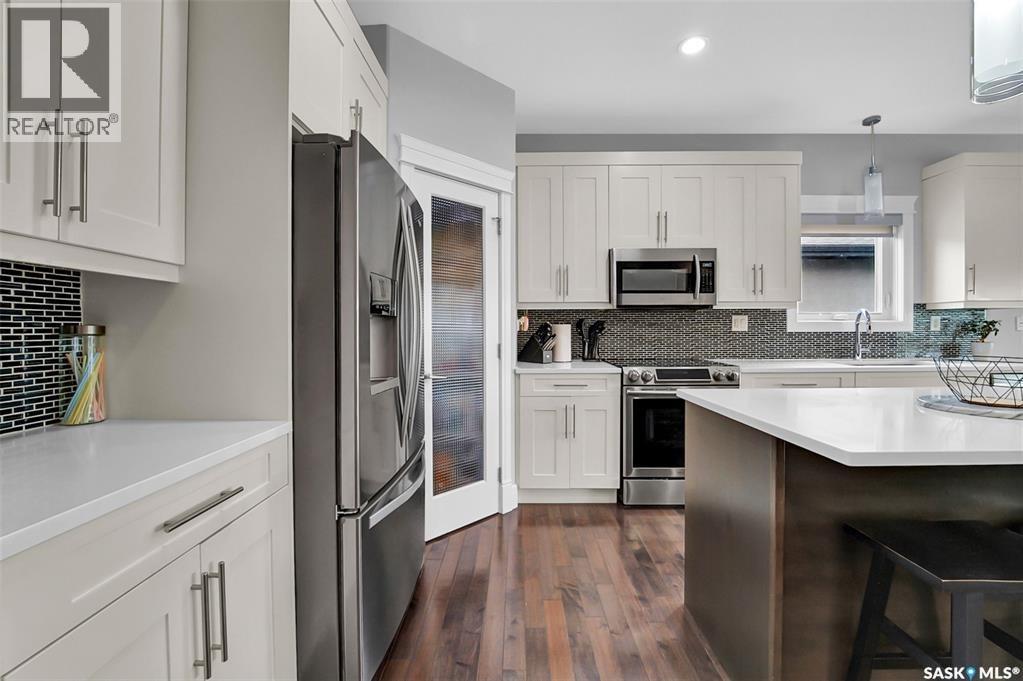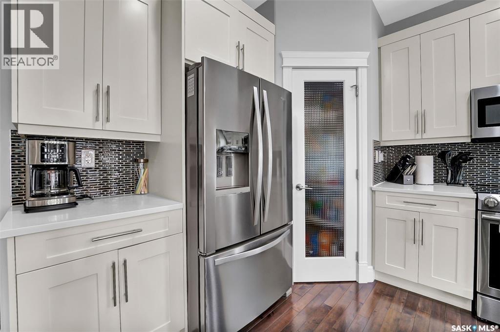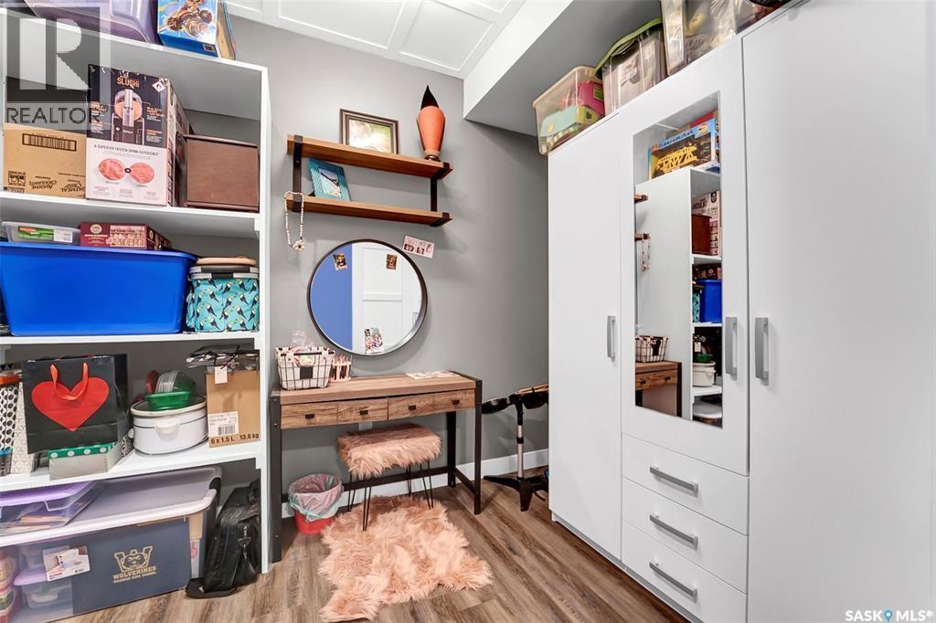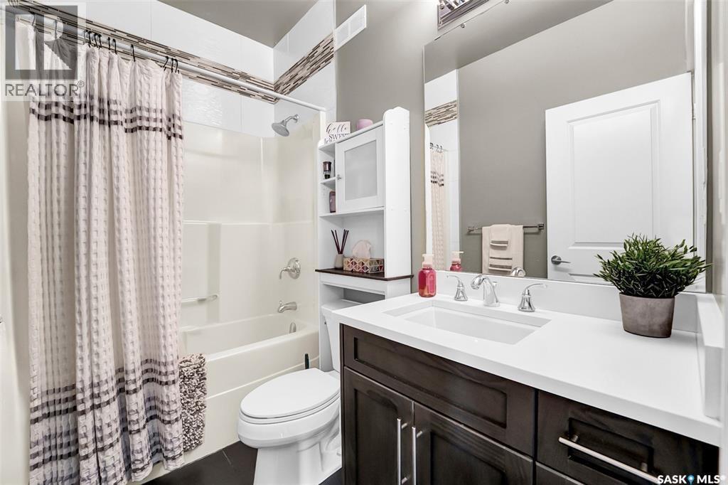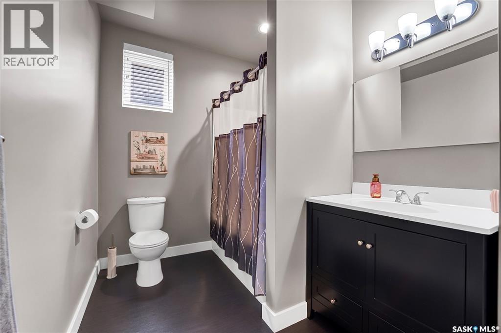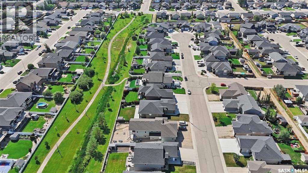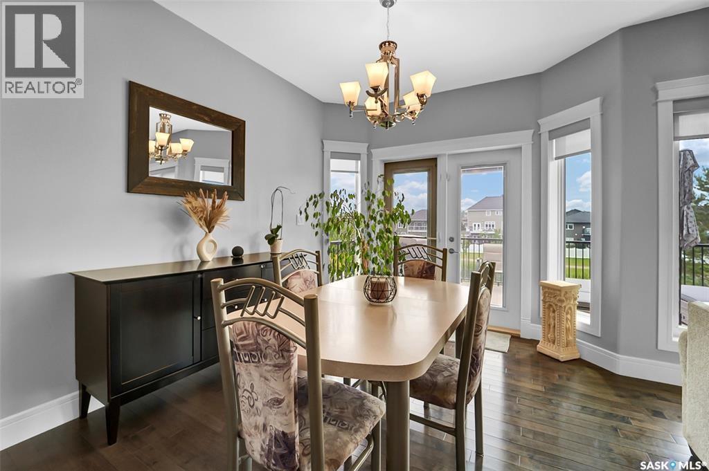 Welcome to this stunning walkout bungalow backing onto the park in Warman, where over $60,000 in recent upgrades have elevated this home into something truly special. From the moment you step inside, you’ll be impressed by the spacious layout, elegant finishes, and natural light throughout. The main floor features a grand front entrance, a high-end kitchen with an oversized island, and a warm, inviting living room with a gas fireplace. The large primary bedroom includes a luxurious five-piece ensuite, while a second bedroom, dedicated office space, main floor laundry, and a breathtaking deck overlooking the park complete the level. The walkout basement offers a spacious family room, games area with a bar, two generous bedrooms, and a full bathroom. The beautifully landscaped backyard includes a lower patio, stonework, and two storage sheds. A heated double garage with 10-foot ceilings adds practicality to the home’s charm. Upgrades include luxury vinyl plank flooring in the basement, upgraded carpet on the main floor, UV/heat protectant tint On the windows in the main floor living room,right side patio door as well as the basement family room right side, a custom front door, refreshed master bath with new taps and paint, front and lower decks, brick flowerbeds, and custom blinds in the basement. With its thoughtful design, serene park views, and turn-key updates, this home is the perfect blend of comfort and elegance ready for you to enjoy. This beautiful home is close to the schools, Warman community centre, and all other amenities. (id:34297)