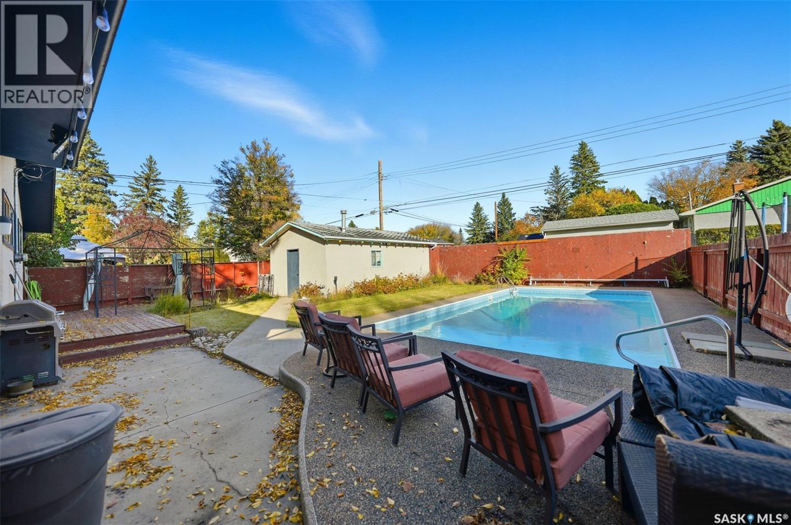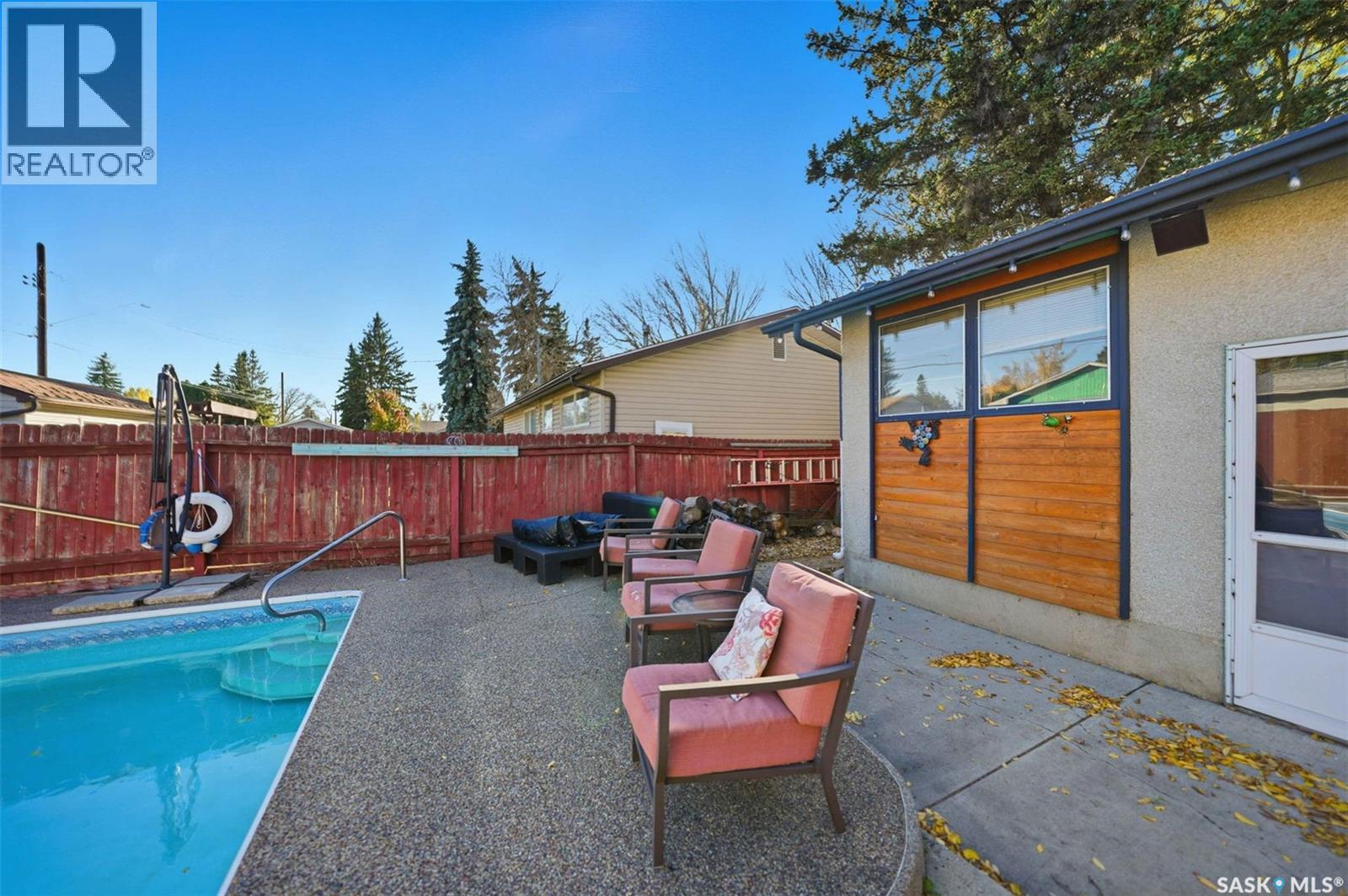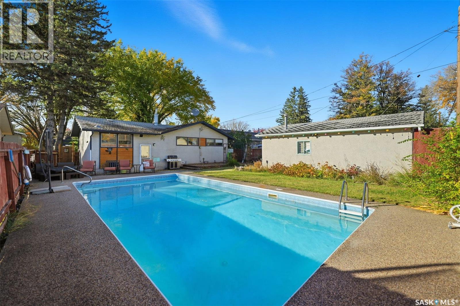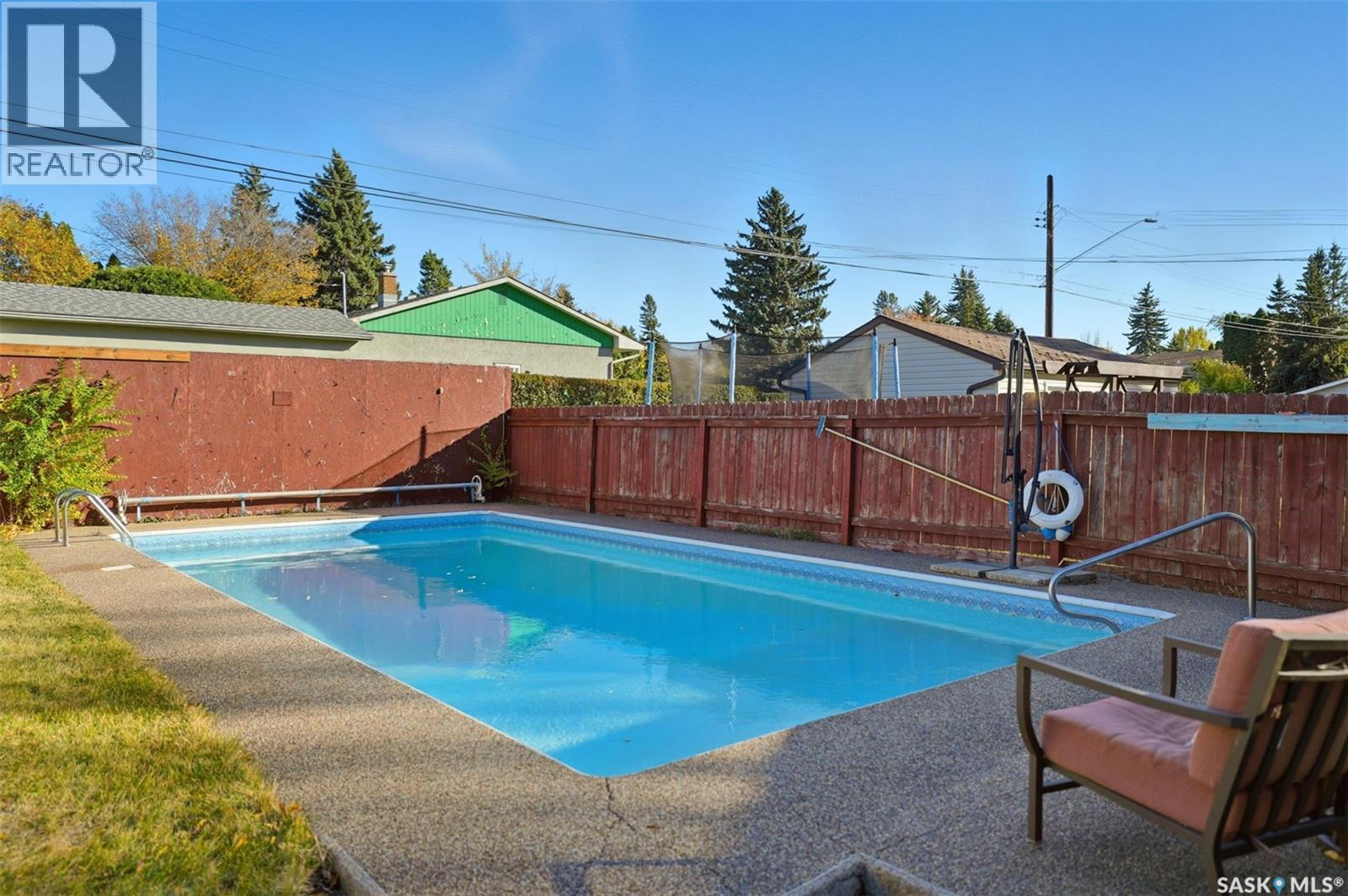 Welcome to your new family haven in West College Park, Saskatoon! This charming 1,088 sqft bungalow perfectly blends comfort, convenience, and fun. This home offers a fantastic layout for families, featuring three bedrooms upstairs and an additional bedroom downstairs—giving everyone their own space. With two full bathrooms, mornings are a breeze! The heart of this home is the super fun backyard. Imagine spending your summers poolside with friends and family! The yard boasts a lovely inground swimming pool that will be the envy of the neighborhood. The backyard is fully fenced and landscaped, creating your own private retreat. Practical amenities include a single detached garage for parking or extra storage. This prime location is close to schools, parks, and all the amenities West College Park has to offer, making it an ideal choice for a growing family. Don't miss the chance to make this delightful house your forever home. Call your REALTOR®? to view today. (id:34297)