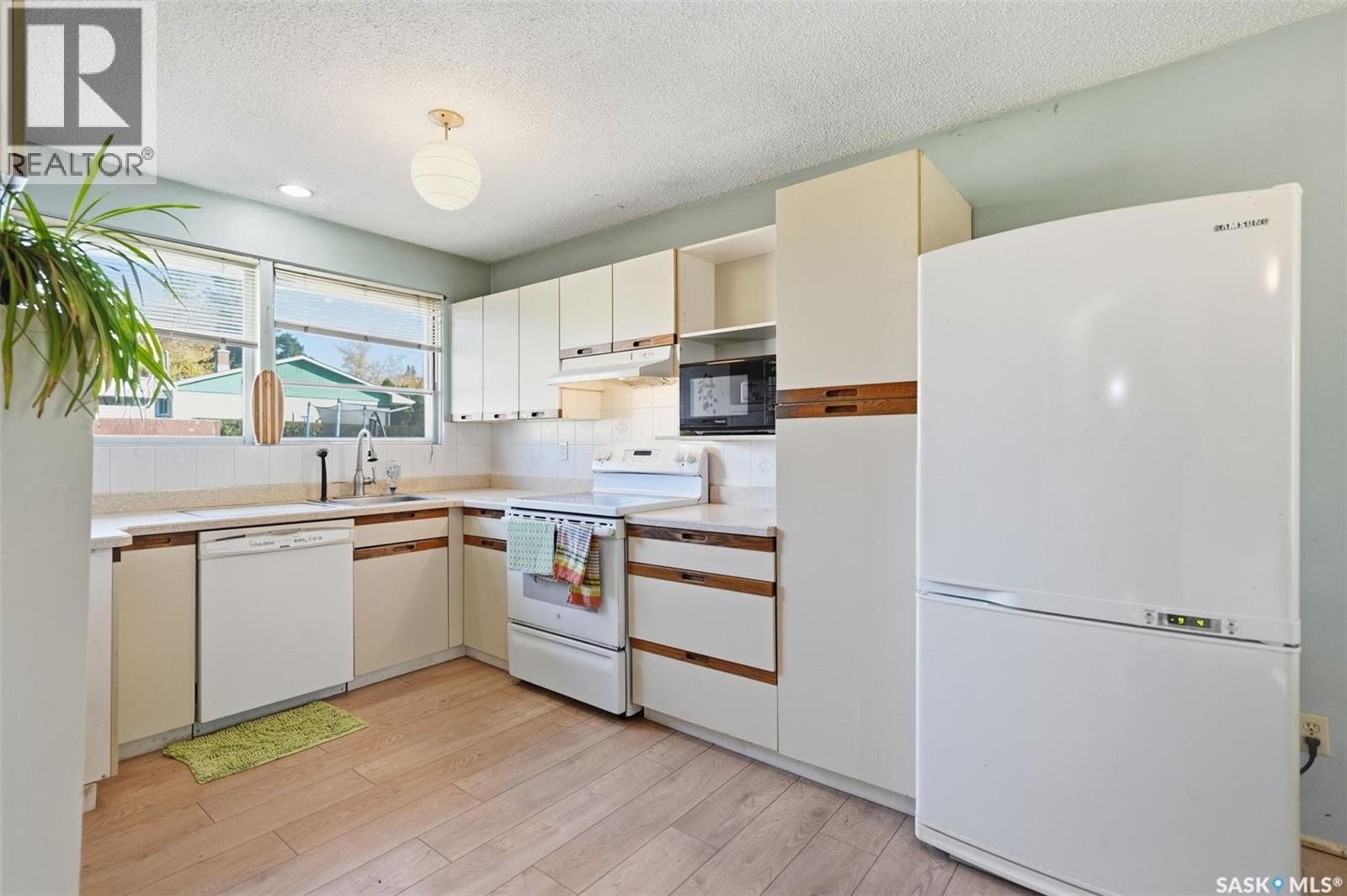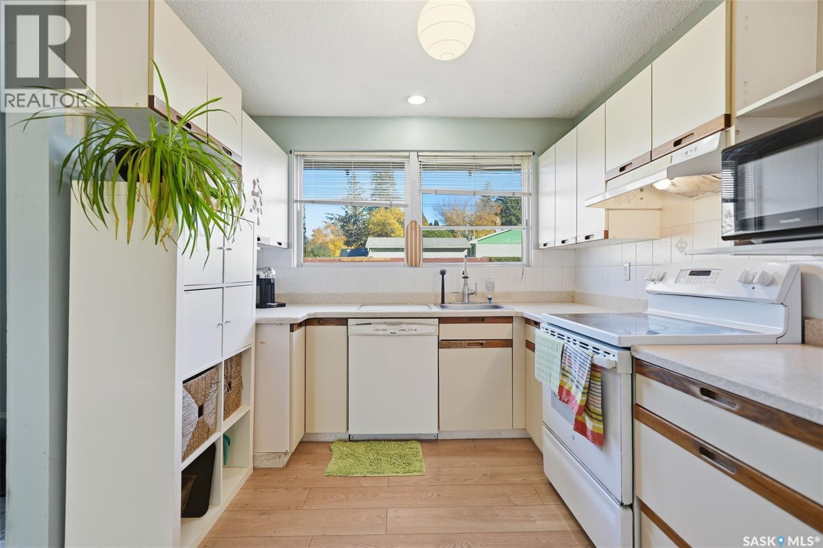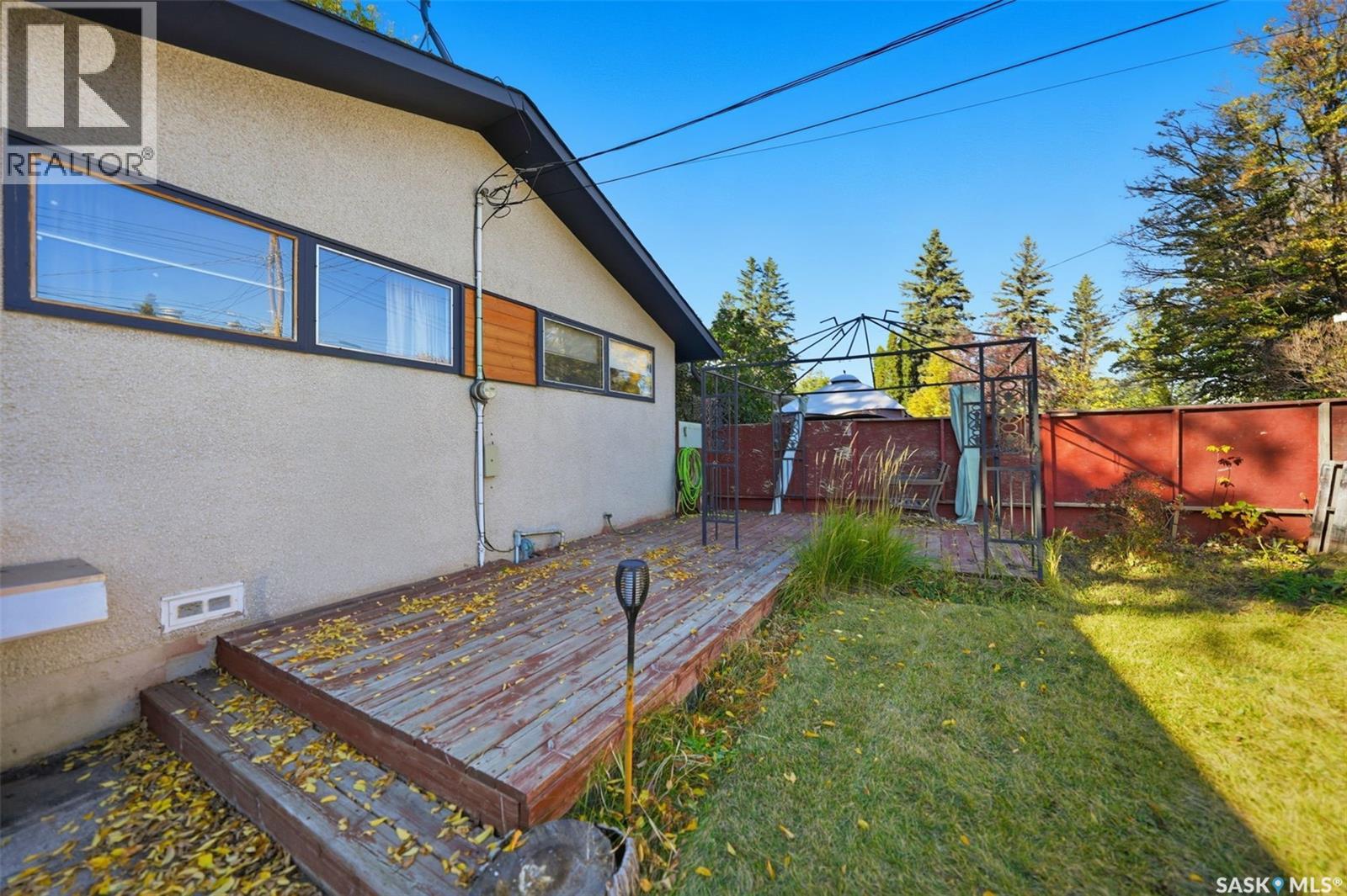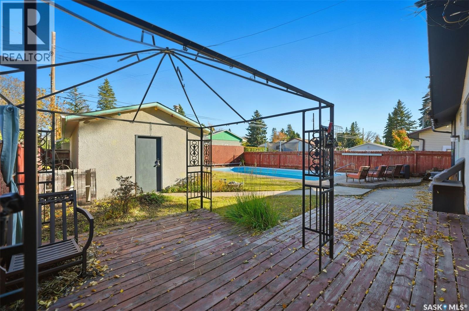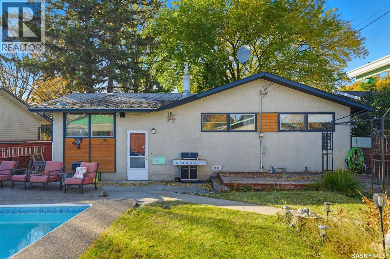 Welcome to your new family haven in West College Park, Saskatoon! This charming 1,088 sqft bungalow perfectly blends comfort, convenience, and fun. This home offers a fantastic layout for families, featuring three bedrooms upstairs and an additional bedroom downstairs—giving everyone their own space. With two full bathrooms, mornings are a breeze! The heart of this home is the super fun backyard. Imagine spending your summers poolside with friends and family! The yard boasts a lovely inground swimming pool that will be the envy of the neighborhood. The backyard is fully fenced and landscaped, creating your own private retreat. Practical amenities include a single detached garage for parking or extra storage. This prime location is close to schools, parks, and all the amenities West College Park has to offer, making it an ideal choice for a growing family. Don't miss the chance to make this delightful house your forever home. Call your REALTOR®? to view today. (id:34297)
