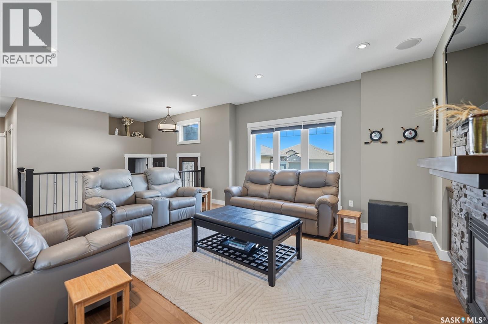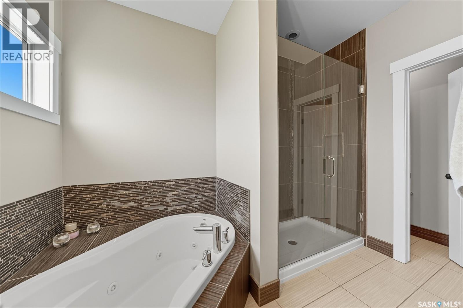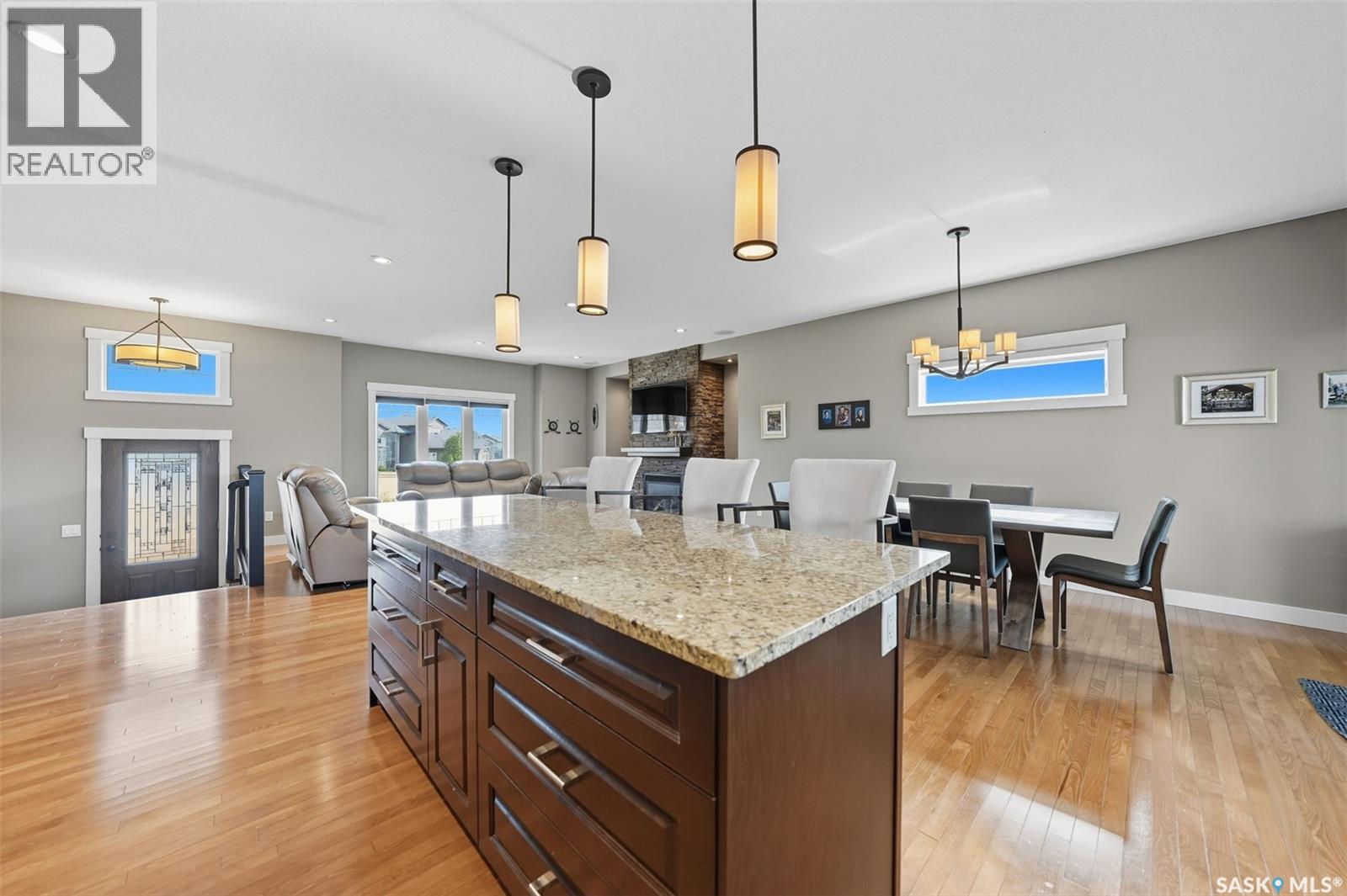 OPEN HOUSE SATURDAY 1-3 PM. Nestled in the heart of Rosewood, this executive bungalow offers a perfect balance of comfort, functionality, and upscale finishes, backing southwest onto walking trails and greenspace. With an expansive open layout, five spacious bedrooms (3 up, 2 down) and three bathrooms, the home is ideal for family living and entertaining. The main floor showcases hardwood and tile flooring with carpet in the bedrooms, a living room with feature gas fireplace and built-in speakers, and a gourmet kitchen with granite countertops, tile backsplash, under-cabinet lighting, soft-close cabinetry with full-extension drawers, and stainless steel appliances. A walk-in closet off the foyer adds everyday convenience. The primary suite is a true retreat, complete with blackout blinds, a large walk-in closet, and a spa-inspired five-piece ensuite with in-floor heat, jetted tub, dual sinks, tiled shower with glass door, and built-in speakers. Two additional bedrooms, a full bathroom, and a laundry room with built-in cabinetry and sink complete the main level. The fully finished basement offers two more large bedrooms (one currently a gym), a full bathroom with quartz vanity and steam shower, plus an inviting family and games area with feature wall and gas fireplace. The mechanical room provides excellent storage and houses an on-demand water heater, humidifier, and central A/C. Every closet features custom MDF built-ins for exceptional organization. Outdoor living is just as appealing with a covered deck and built-in speakers, large storage shed, and easy access to trails. The attached heated garage measures 26' x 24'/26'. Thoughtfully designed and meticulously maintained, this home is perfectly located with easy access to parks and all area amenities. (id:34297)