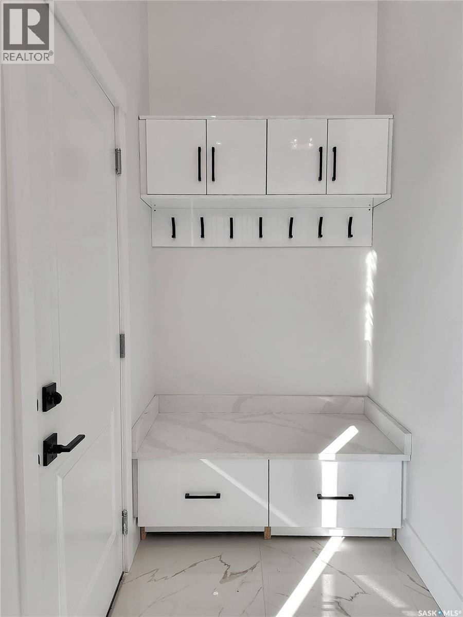 Great opportunity to live in a brand new home in Warman close to the Legends Golf Course, Sports Centre, grocery stores and all other amenities. 1,527 sqft bi-level. Spacious/open concept with 9’ ceilings up and 9' down giving it a light/bright/ modern feel. Main level is perfect for entertaining guests. Kitchen has island, corner pantry, tile backsplash, and ample cupboard storage. You'll love the luxurious en-suite bathroom off the primary bedroom with double sink, soaker tub & beautiful custom tile shower. Lots of high-end finishings throughout with upgraded vinyl flooring, unique fixtures, quartz and tile work. Other notable features include a gorgeous electric fireplace in the living room & a covered deck (no stairs included). Also has a triple attached garage (insulated & natural gas heat) and a triple concrete driveway. Southeast facing front with lovely street appeal on a pie shaped lot with extra space in the backyard. Interior photo's are from a different house, same plan. Established local builder, Blanket New Home Warranty, call today! (id:34297)