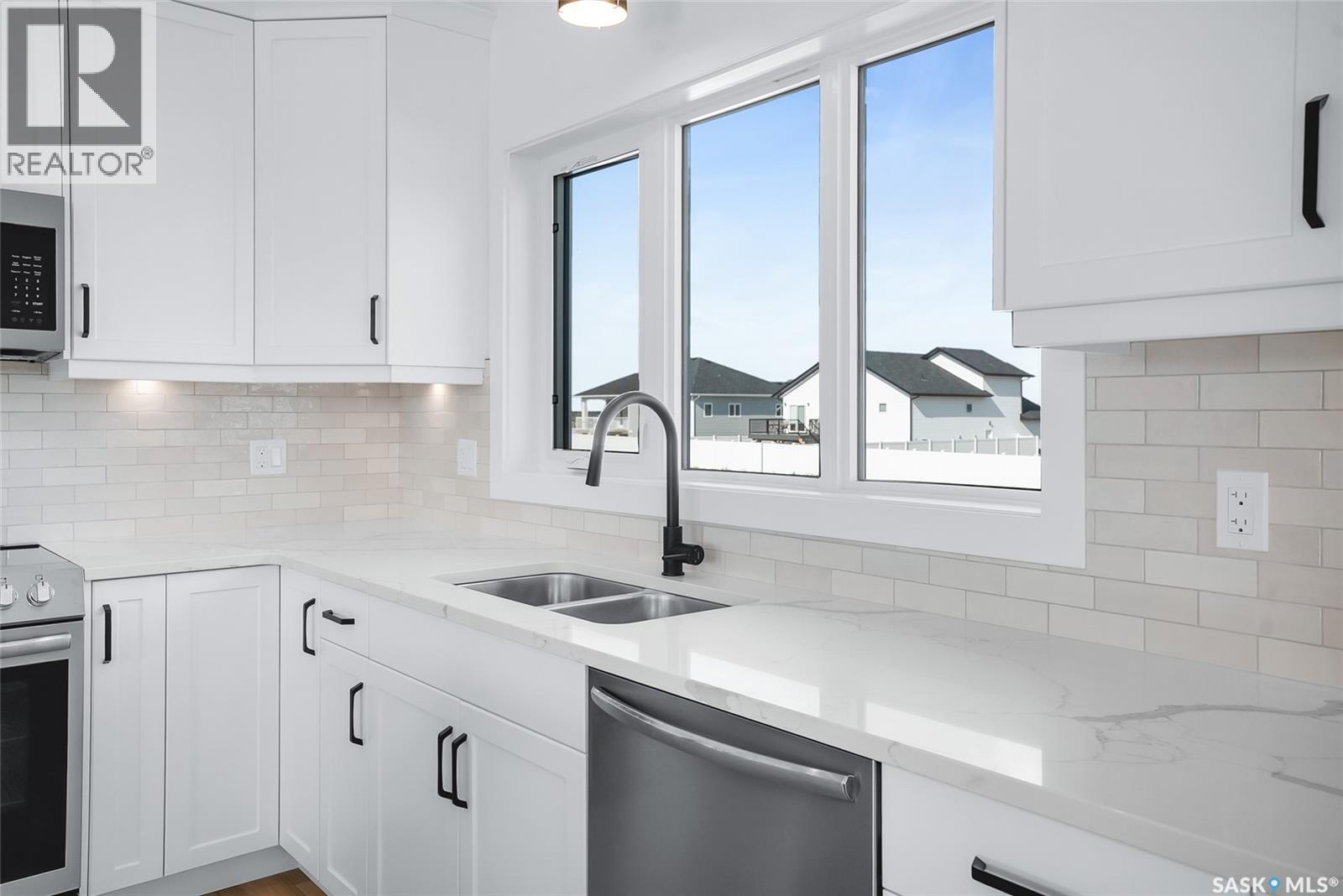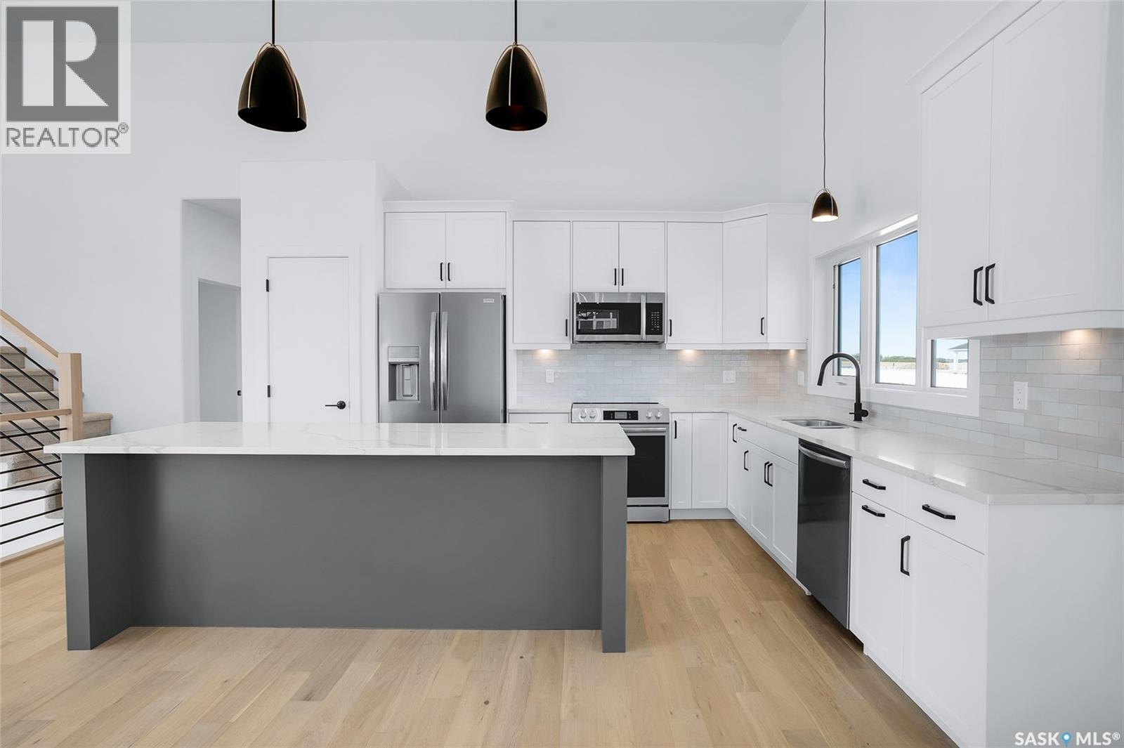 842 Ballesteros Crescent isn’t just a house, it’s your stage for the next great chapter. This brand new 2025 Pawluk Homes modified bi-level blends wow-factor design with a very functional floor plan, set in the desirable and thriving city of Warman’s Legends neighbourhood with quick highway access, the golf course just minutes away, and all the amenities you need close at hand. Excellent street appeal greets you with its striking stucco and stone exterior, and inside, vaulted ceilings, a modern railing, and a gas fireplace create a warm, stylish main living space flooded with natural light. The kitchen, with it’s Quartz counters, soft-close cabinetry, big island, sleek tile backsplash and seamless flow to the dining and living areas—becomes the natural gathering spot, with a door off the dining room leading to a composite deck for easy indoor/outdoor living. The private primary suite offers a walk-in closet and spa-inspired ensuite with dual sinks and a tiled shower, while two more bedrooms and a full bath complete the main floor. Downstairs, the fully finished basement is made for the whole family to enjoy, with a spacious family/games area, two more bedrooms, and a third bathroom. The 37-foot heated-ready garage is insulated, drywalled, and painted—perfect for toys, tools, and projects. The whole package is backed by a 10-year Progressive New Home Warranty so you can settle in and simply enjoy. With quick access to hit the highway and go to the lake or be in the City of Saskatoon in under 15 minutes, you don’t want to miss this one! (id:34297)