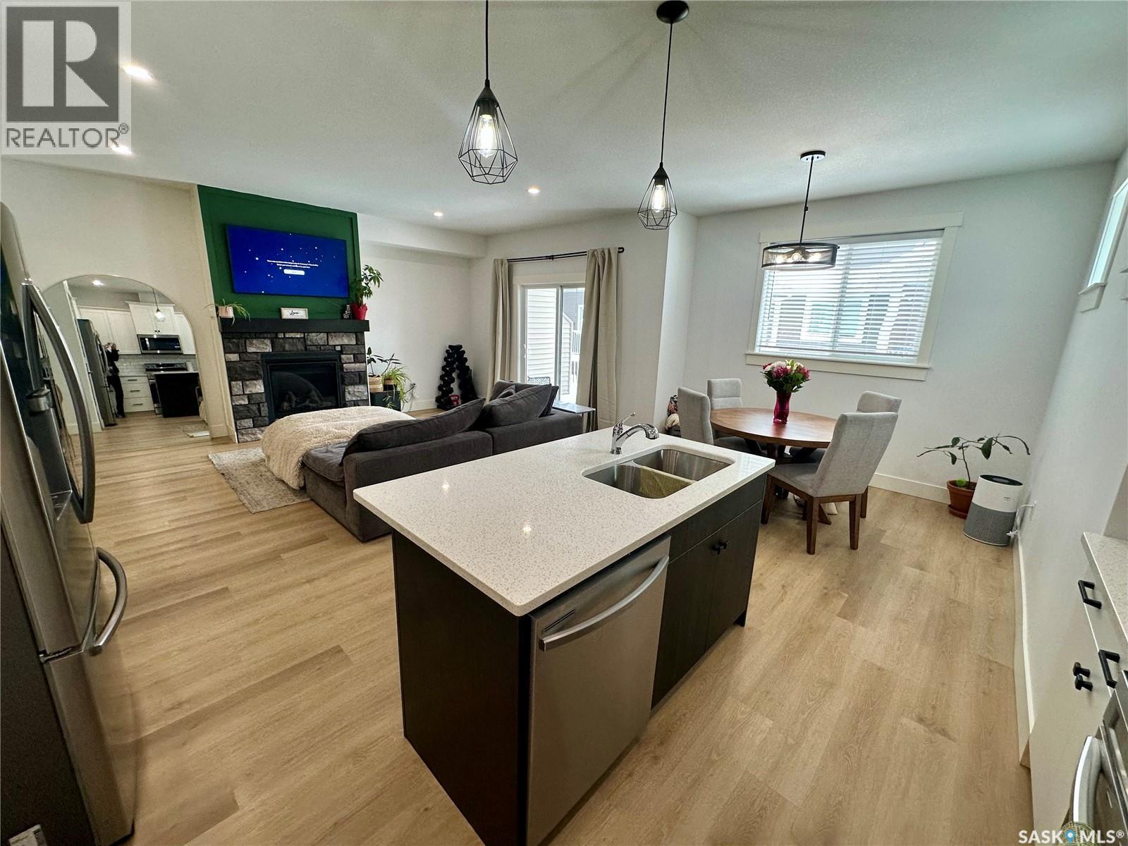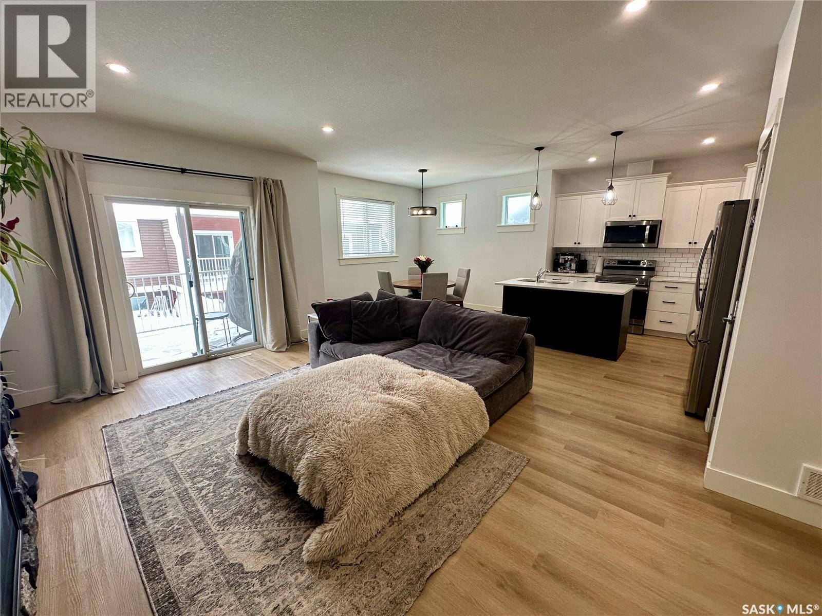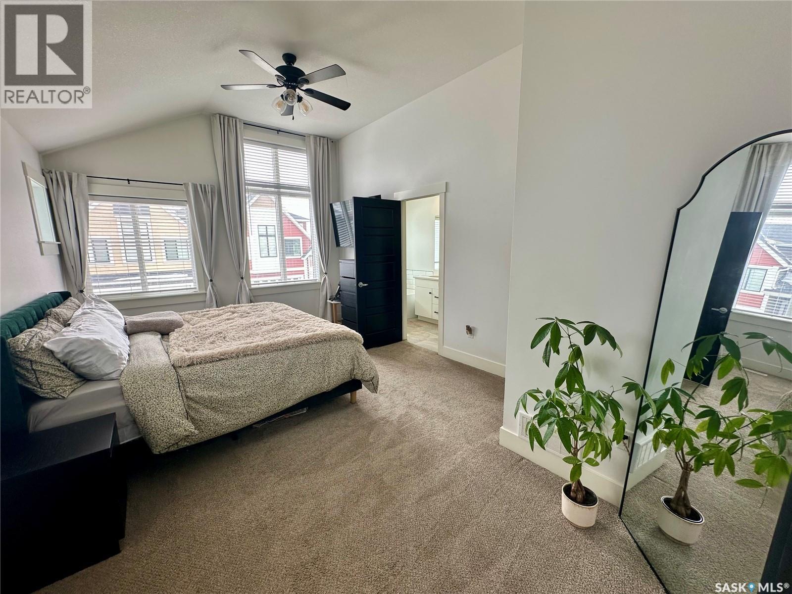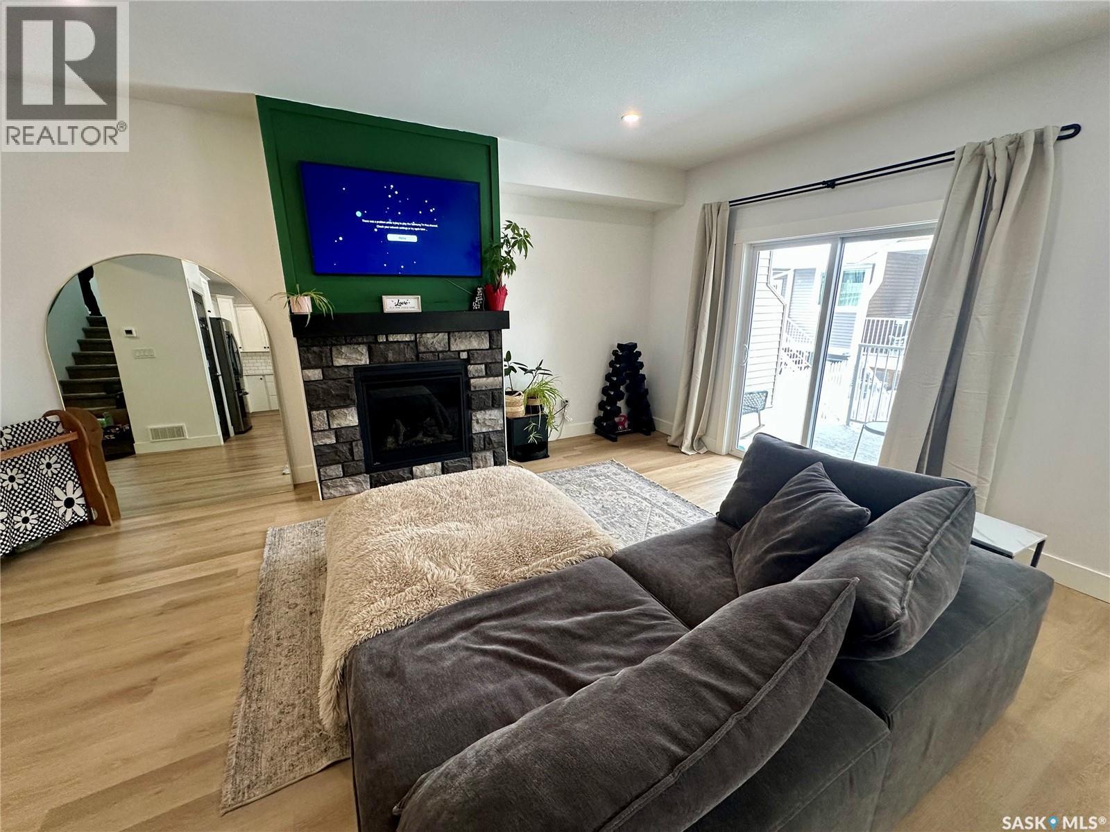 $297 MonthlyWelcome to this stunning 1,776 sq. ft. executive-style townhouse in Warman, offering a unique two-storey design and exceptional living space. The open-concept main floor features a beautiful kitchen with quartz countertops, smart appliances, soft-close cabinetry, a pantry, and flows seamlessly into the bright living area highlighted by a cozy gas fireplace. A truly luxurious primary retreat is set on its own private level above the garage, showcasing vaulted ceilings, expansive windows that fill the room with natural light, a spacious walk-in closet, and a spa-inspired 5-piece ensuite complete with a relaxing soaker tub. Additional highlights include a double attached garage, central air conditioning, smart lights, a basement open for development with high ceilings, a large window and rough-in for a future bathroom, plus a private fenced yard with a covered deck—perfect for enjoying outdoor living. Call today for your own private tour! (id:34297)