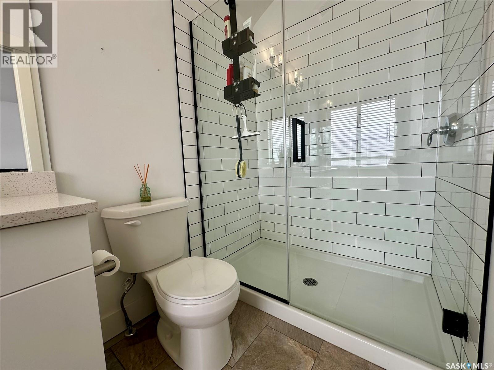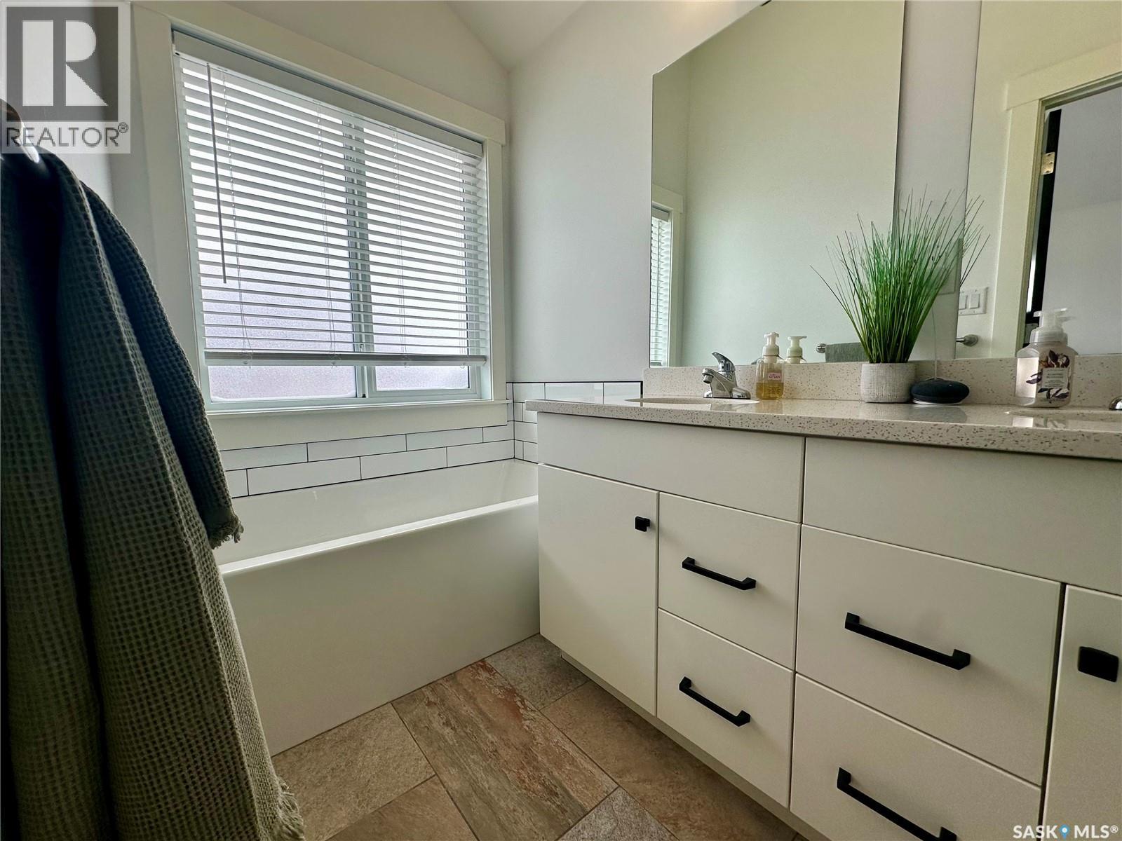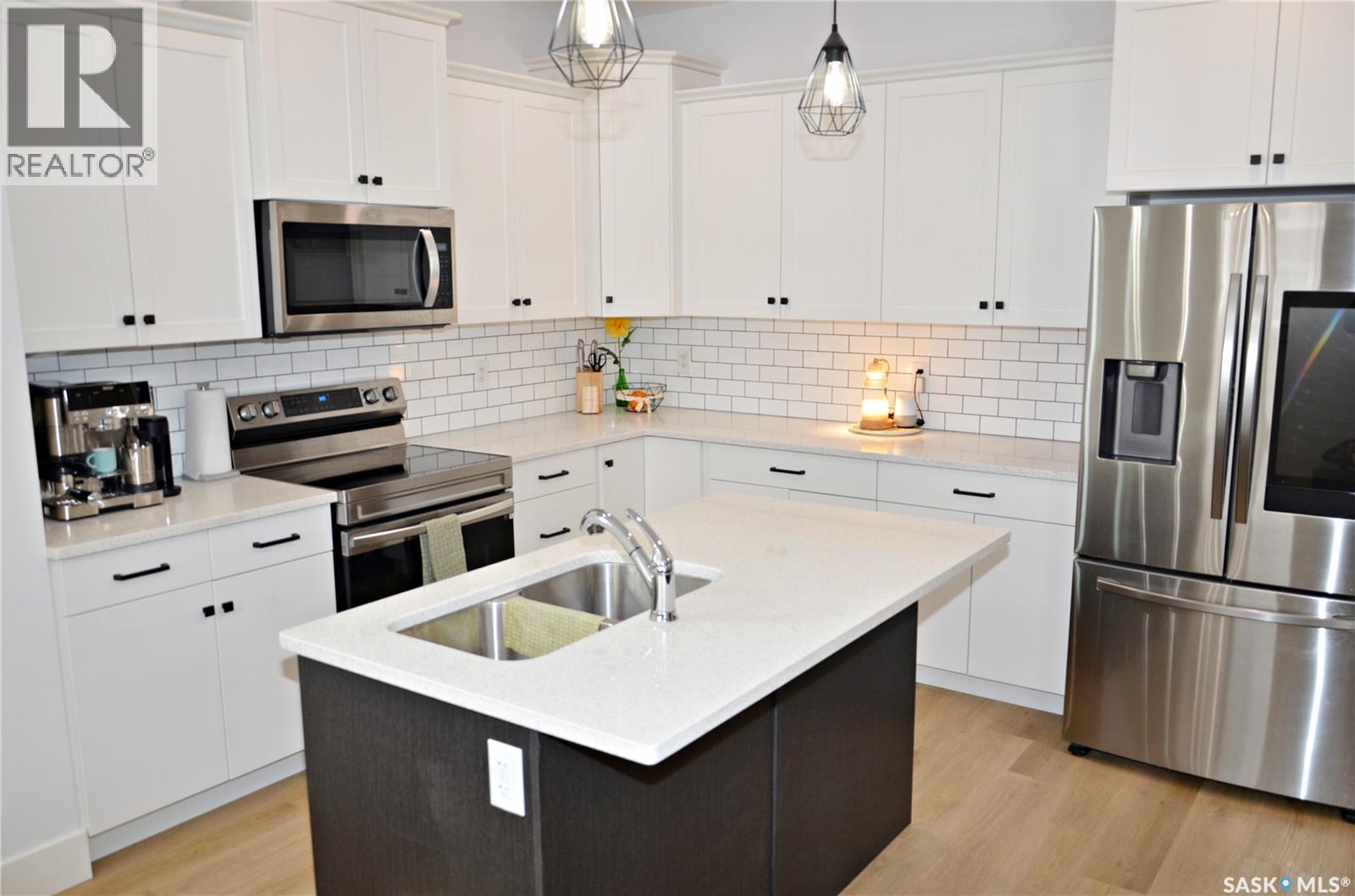 $297 MonthlyWelcome to this stunning 1,776 sq. ft. executive-style townhouse in Warman, offering a unique two-storey design and exceptional living space. The open-concept main floor features a beautiful kitchen with quartz countertops, smart appliances, soft-close cabinetry, a pantry, and flows seamlessly into the bright living area highlighted by a cozy gas fireplace. A truly luxurious primary retreat is set on its own private level above the garage, showcasing vaulted ceilings, expansive windows that fill the room with natural light, a spacious walk-in closet, and a spa-inspired 5-piece ensuite complete with a relaxing soaker tub. Additional highlights include a double attached garage, central air conditioning, smart lights, a basement open for development with high ceilings, a large window and rough-in for a future bathroom, plus a private fenced yard with a covered deck—perfect for enjoying outdoor living. Call today for your own private tour! (id:34297)