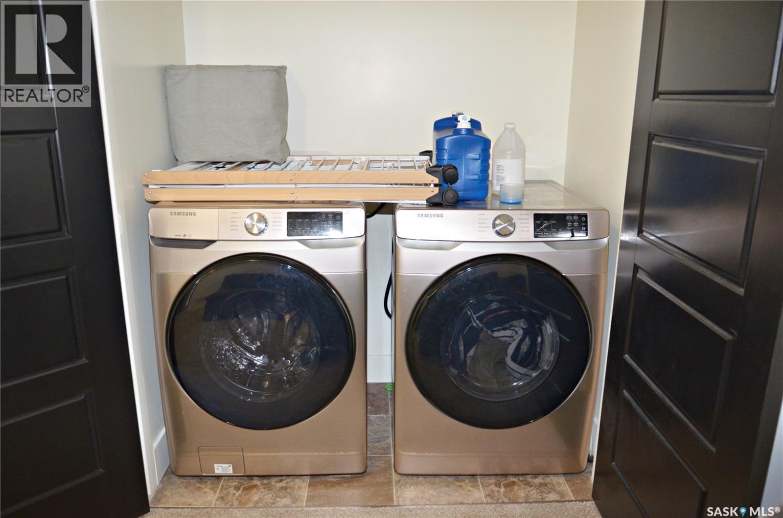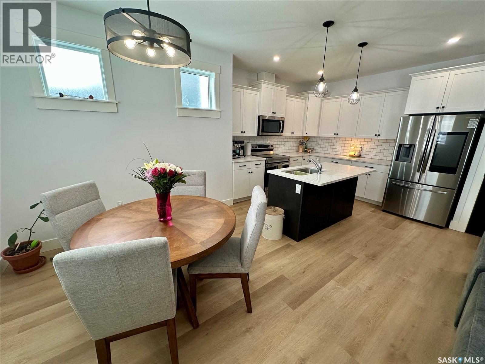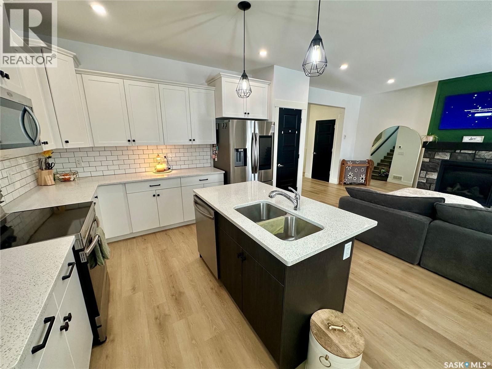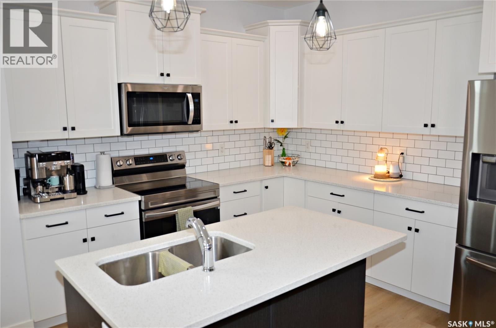$297 MonthlyWelcome to this stunning 1,776 sq. ft. executive-style townhouse in Warman, offering a unique two-storey design and exceptional living space. The open-concept main floor features a beautiful kitchen with quartz countertops, smart appliances, soft-close cabinetry, a pantry, and flows seamlessly into the bright living area highlighted by a cozy gas fireplace. A truly luxurious primary retreat is set on its own private level above the garage, showcasing vaulted ceilings, expansive windows that fill the room with natural light, a spacious walk-in closet, and a spa-inspired 5-piece ensuite complete with a relaxing soaker tub. Additional highlights include a double attached garage, central air conditioning, smart lights, a basement open for development with high ceilings, a large window and rough-in for a future bathroom, plus a private fenced yard with a covered deck—perfect for enjoying outdoor living. Call today for your own private tour! (id:34297)