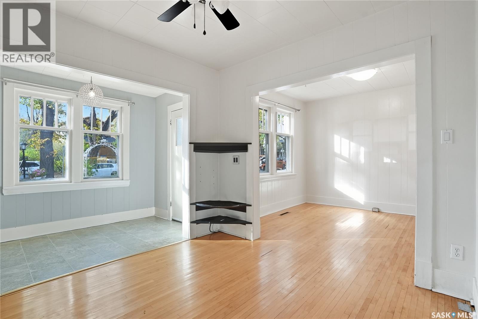 Welcome to 912 5th Avenue North, a charming bungalow nestled in the heart of Saskatoon’s highly desirable City Park neighbourhood. This home combines timeless character with an unbeatable location and is just steps away from downtown, the university, the river, hospitals, and countless local shops, cafés, and workplaces. Inside, you’ll find a bright and welcoming foyer that opens into a cozy living room and a separate dining area. The main floor features two comfortable bedrooms and a full bathroom. The basement offers plenty of storage space and potential for future development. Outside, the yard is easy to maintain, yet still offers room for a garden or play space. A spacious deck with attached shed extends your living area outdoors and the single detached garage is insulated, and there’s even potential for extra parking beside it. Additional features include main floor laundry, underground sprinklers and a natural gas BBQ line. With a list price of just $299,900, this property offers incredible access to one of Saskatoon’s most walkable and vibrant neighbourhoods. Whether you’re a first-time buyer, professional, or downsizer looking for location and lifestyle, this home checks all the right boxes. (id:34297)